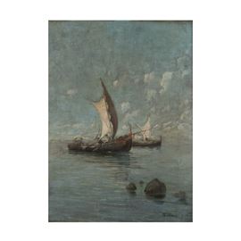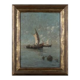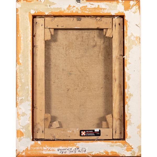 40x29,3 cm"Marina con pescatori", olio su tela, entro cornice