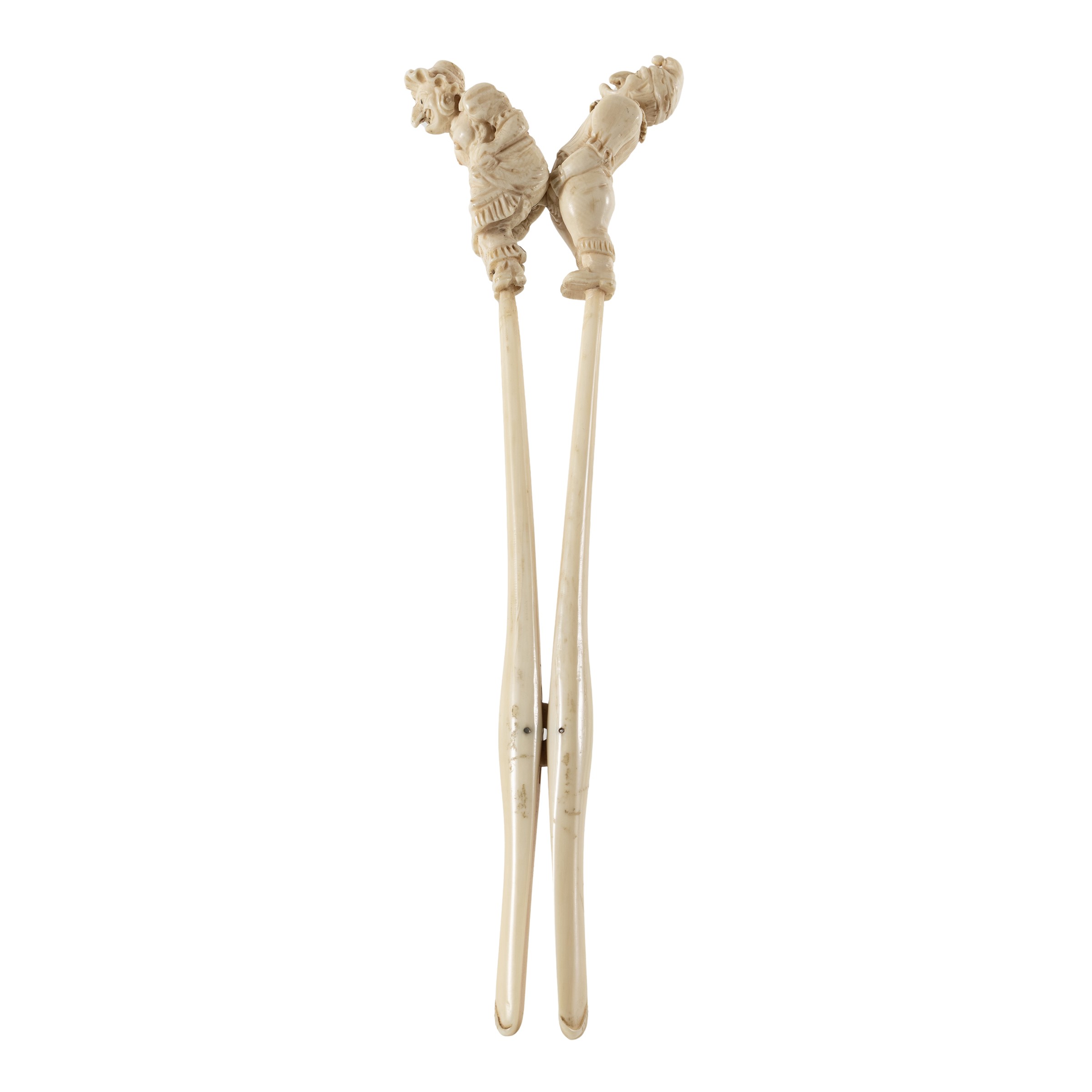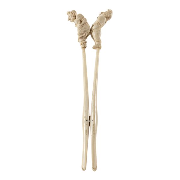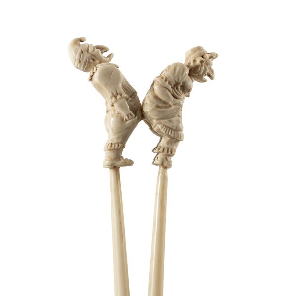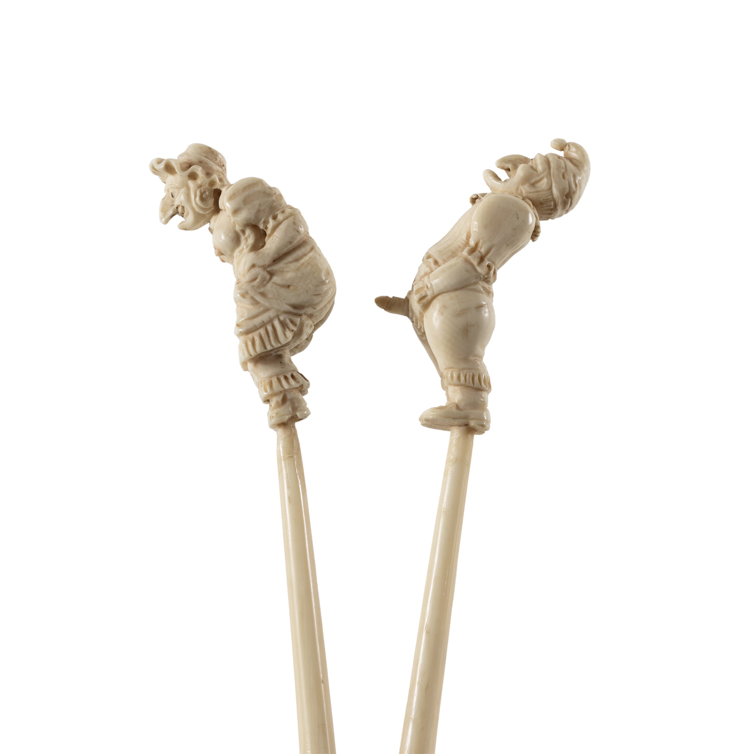 h. 24,5 cm.raffigurante Punch e Judy alla sommità di due aste con meccanismo a molla.