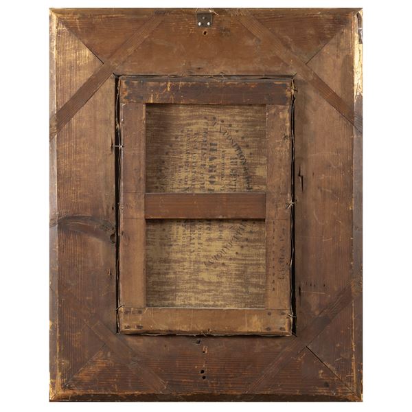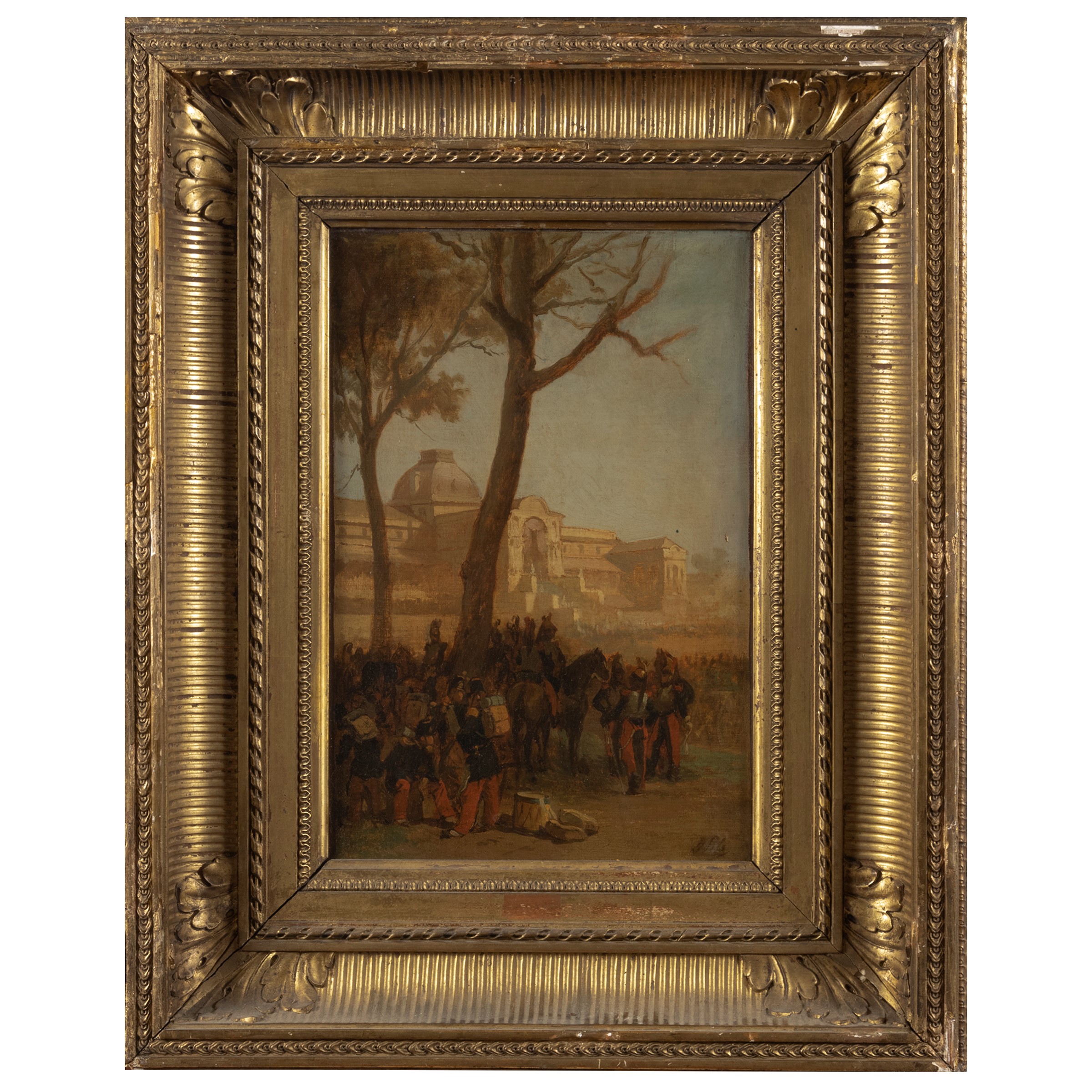 34,5x23 cm."Truppe a riposo", olio su tela, firmato in basso a destra, entro cornice