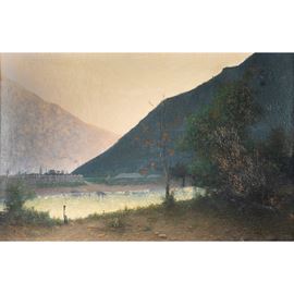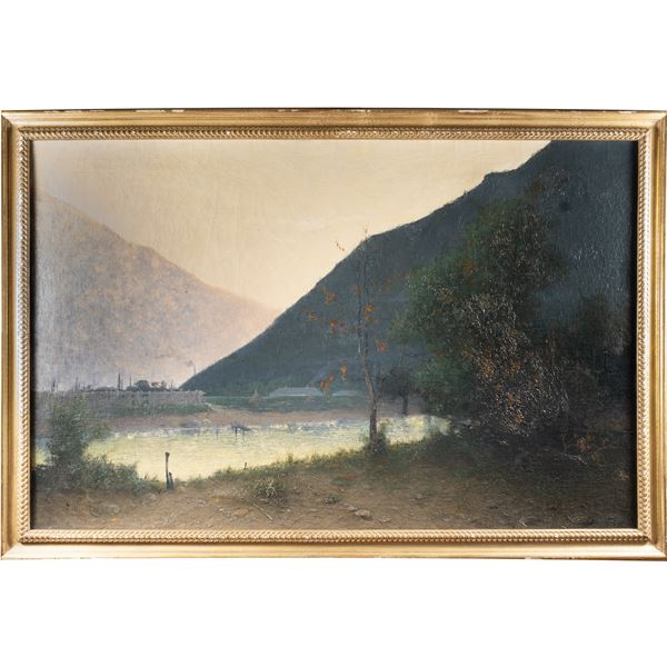 "Paesaggio", olio su tela, firmato in basso a sinistra, entro cornice