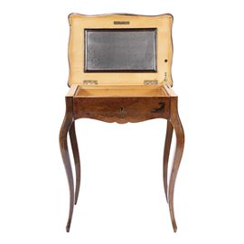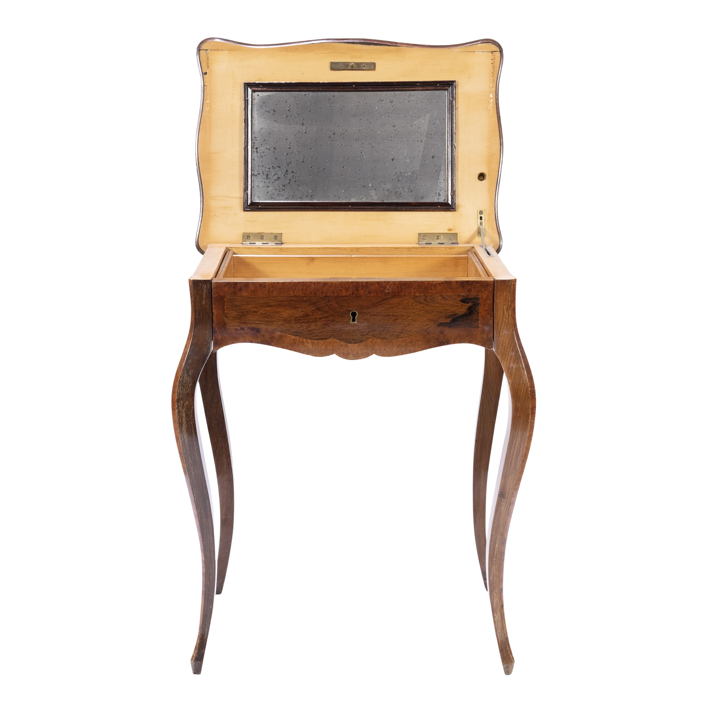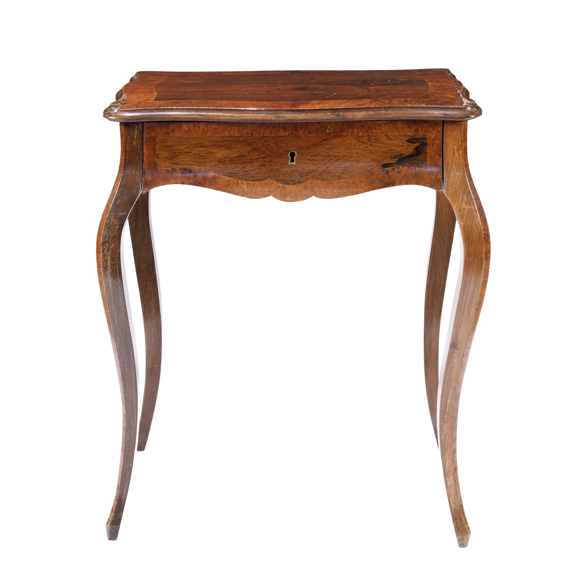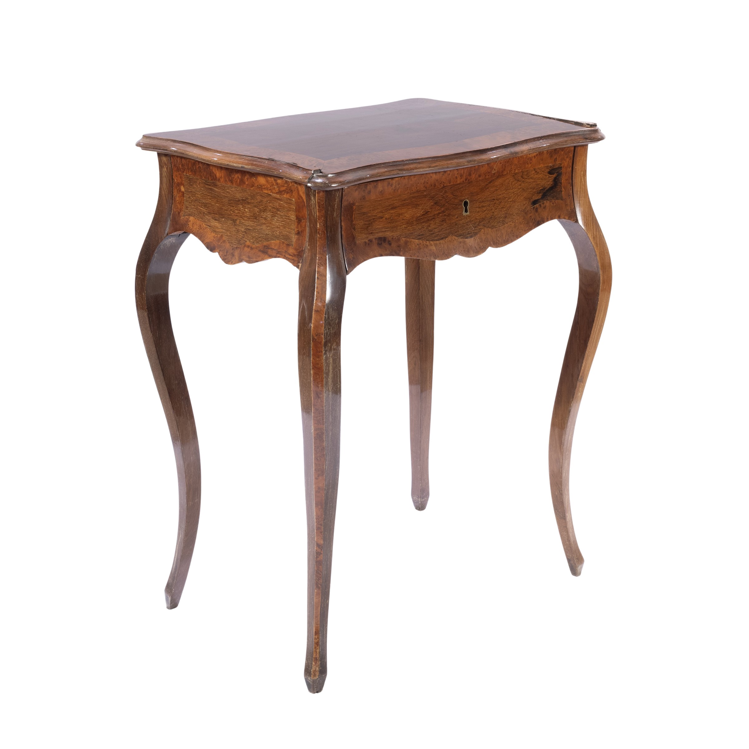 69x58x40 cm.piano sagomato con un cassetto sottostante, gambe di linea mossa, usure e difetti