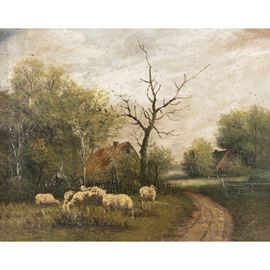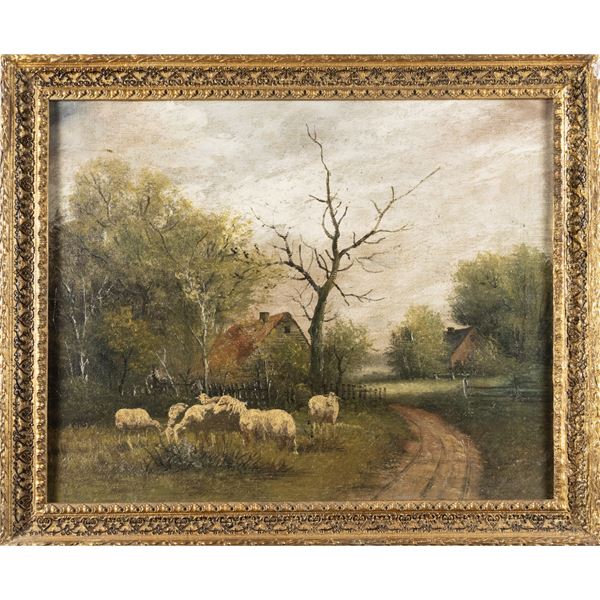 40,5x51 cm."Paesaggio campestre", olio su tela, entro cornice