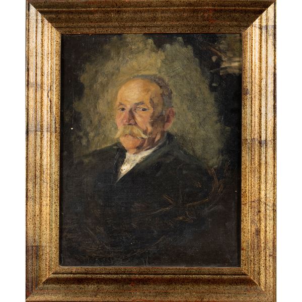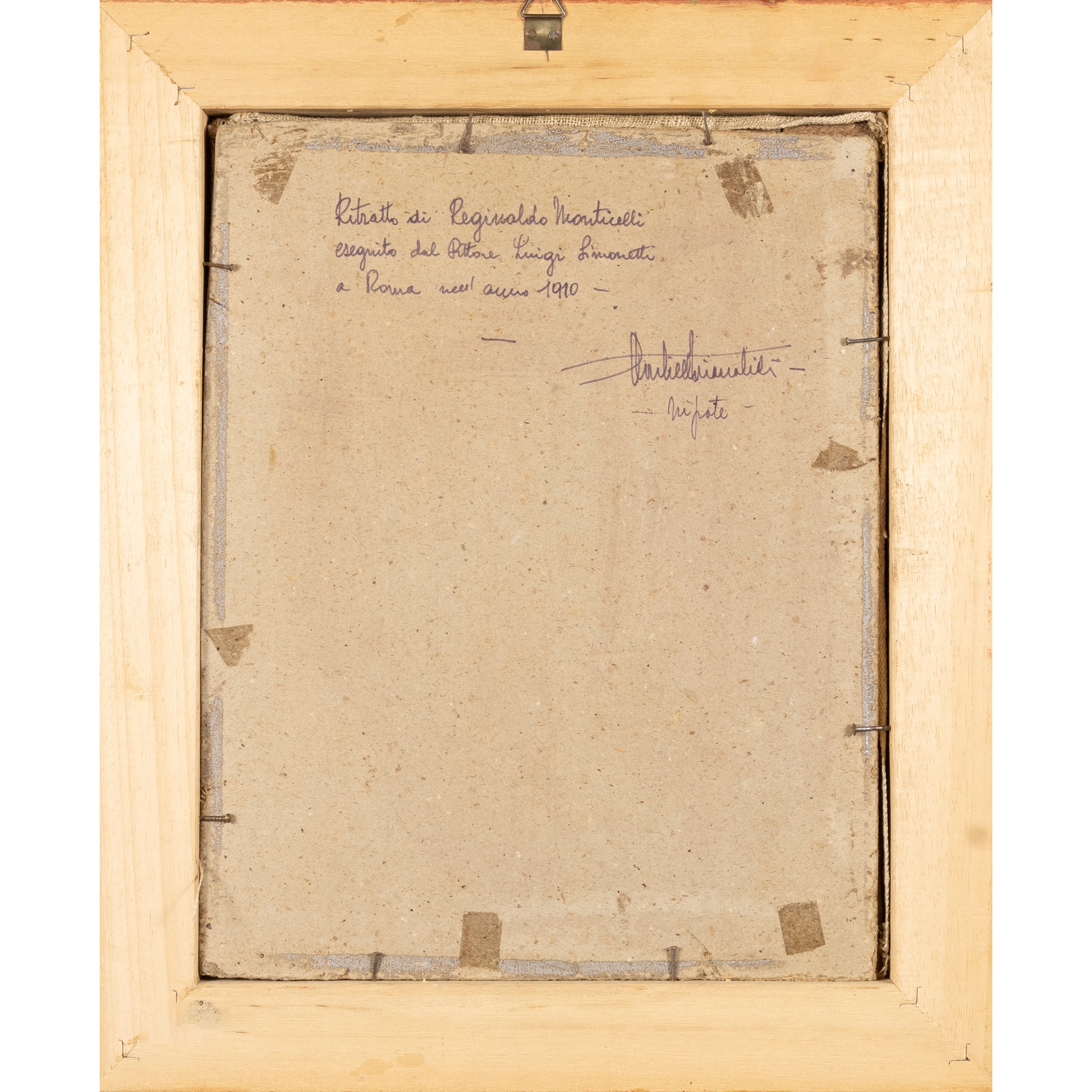 32,5x25,5 cm."Ritratto di Reginaldo Monticelli", olio su cartoncino applicato su tela, entro cornice