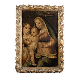 39,5x29,5 cm."Il matrimonio mistico di Santa Caterina", olio su tavola, entro cornice