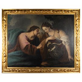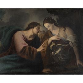 97x124 cm."Cristo e la Samaritana", olio su tela, entro cornice