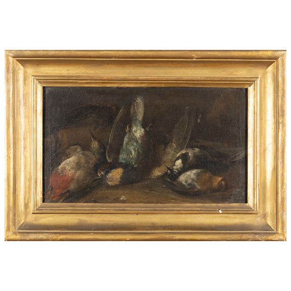 21x36 cm."Natura morta con cacciagione", olio su tela, entro cornice