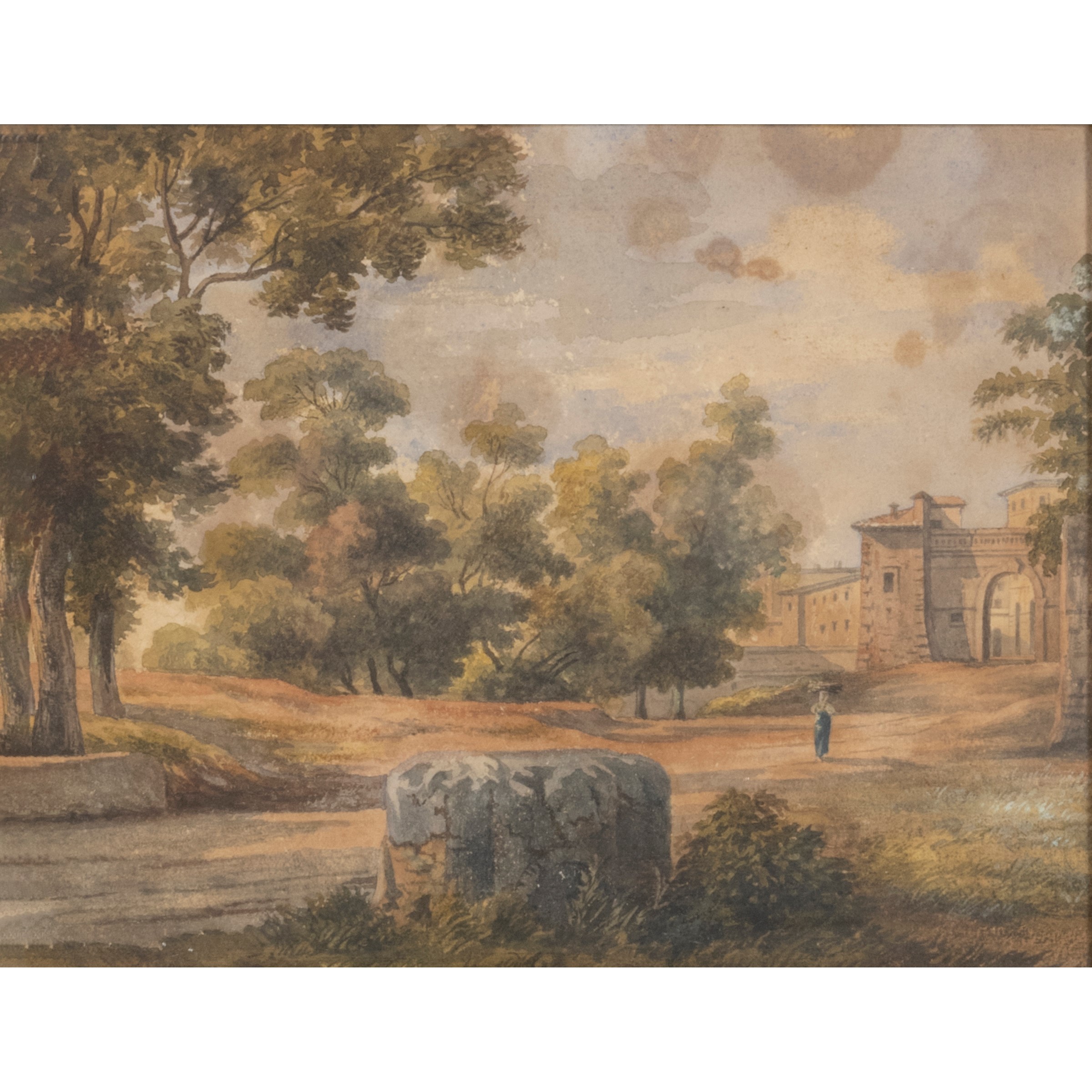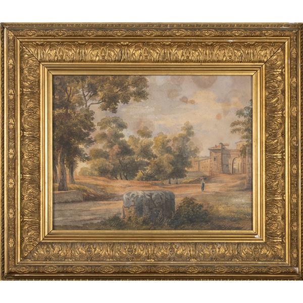 27,5x35 cm."Veduta fuori porta", acquerello su carta, entro cornice
