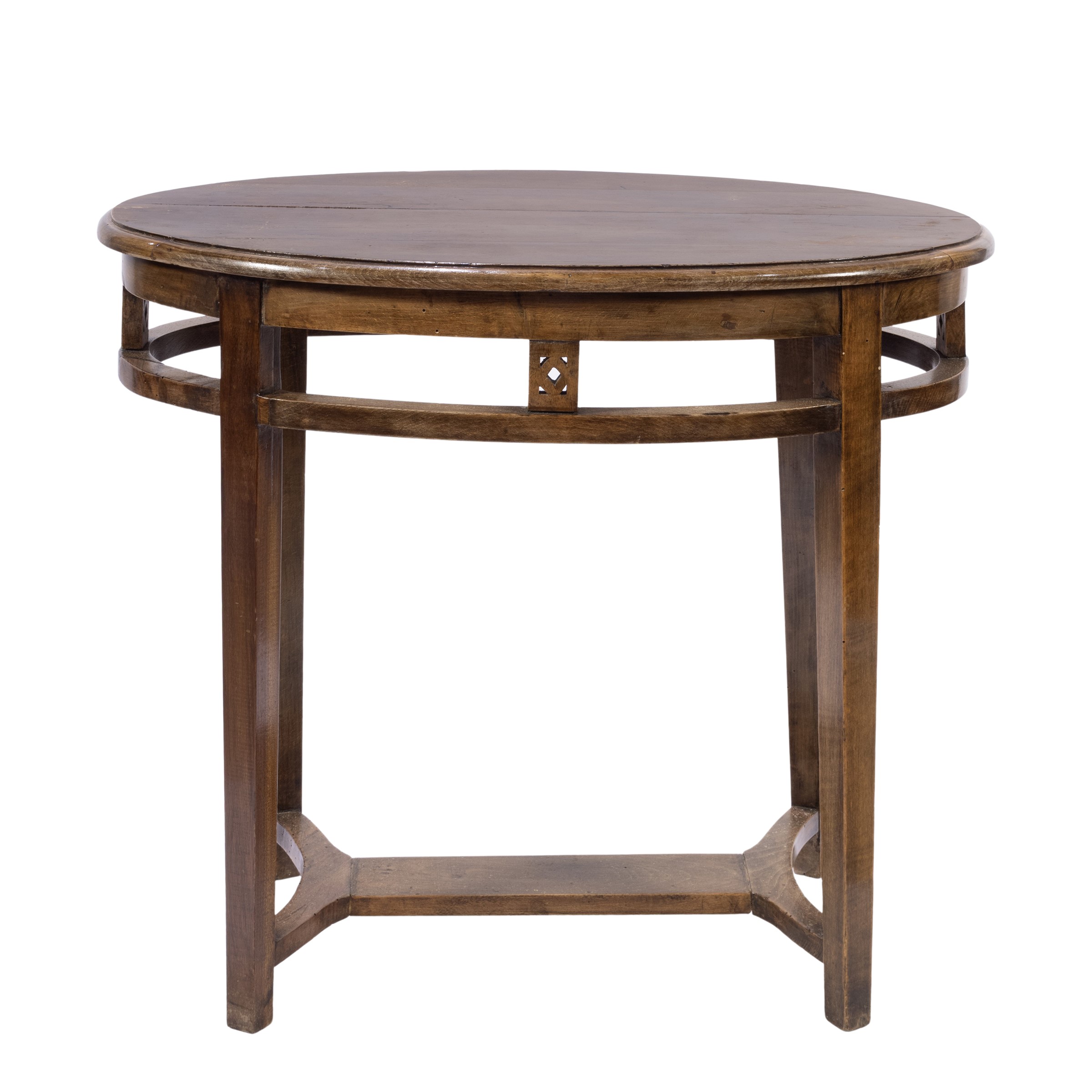 65x76x48 cm.piano ovale con fascia sottostante traforata, poggiante su quattro sostegni, usure