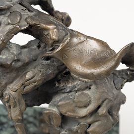 scultura in bronzo a patina brunita, firmato sul mantello, base in marmo