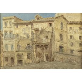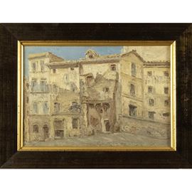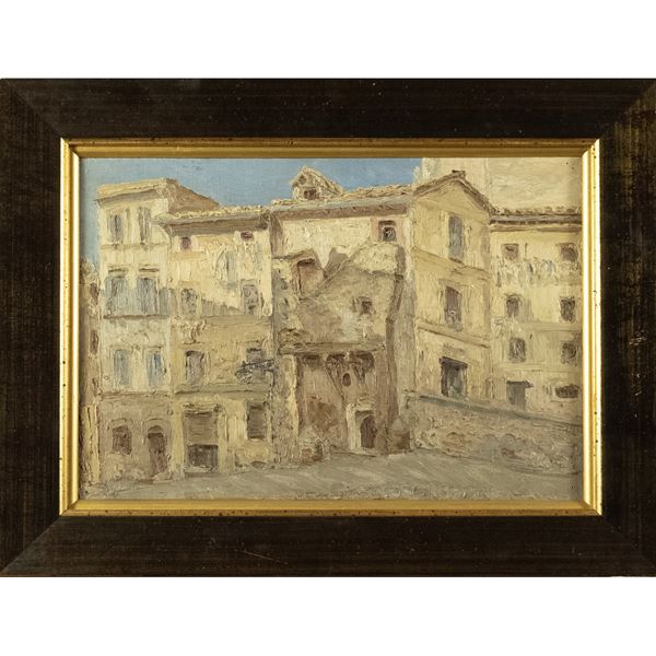"Scorcio di Roma", olio su tela, entro cornice