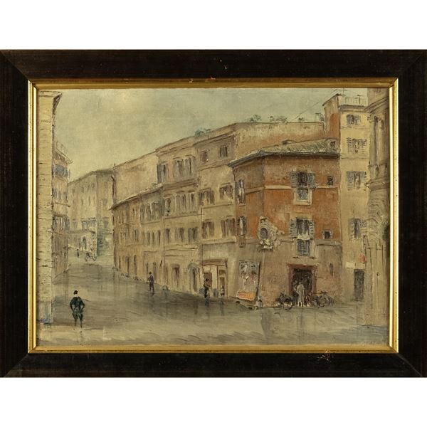 "Scorcio di Roma", olio su tela, entro cornice