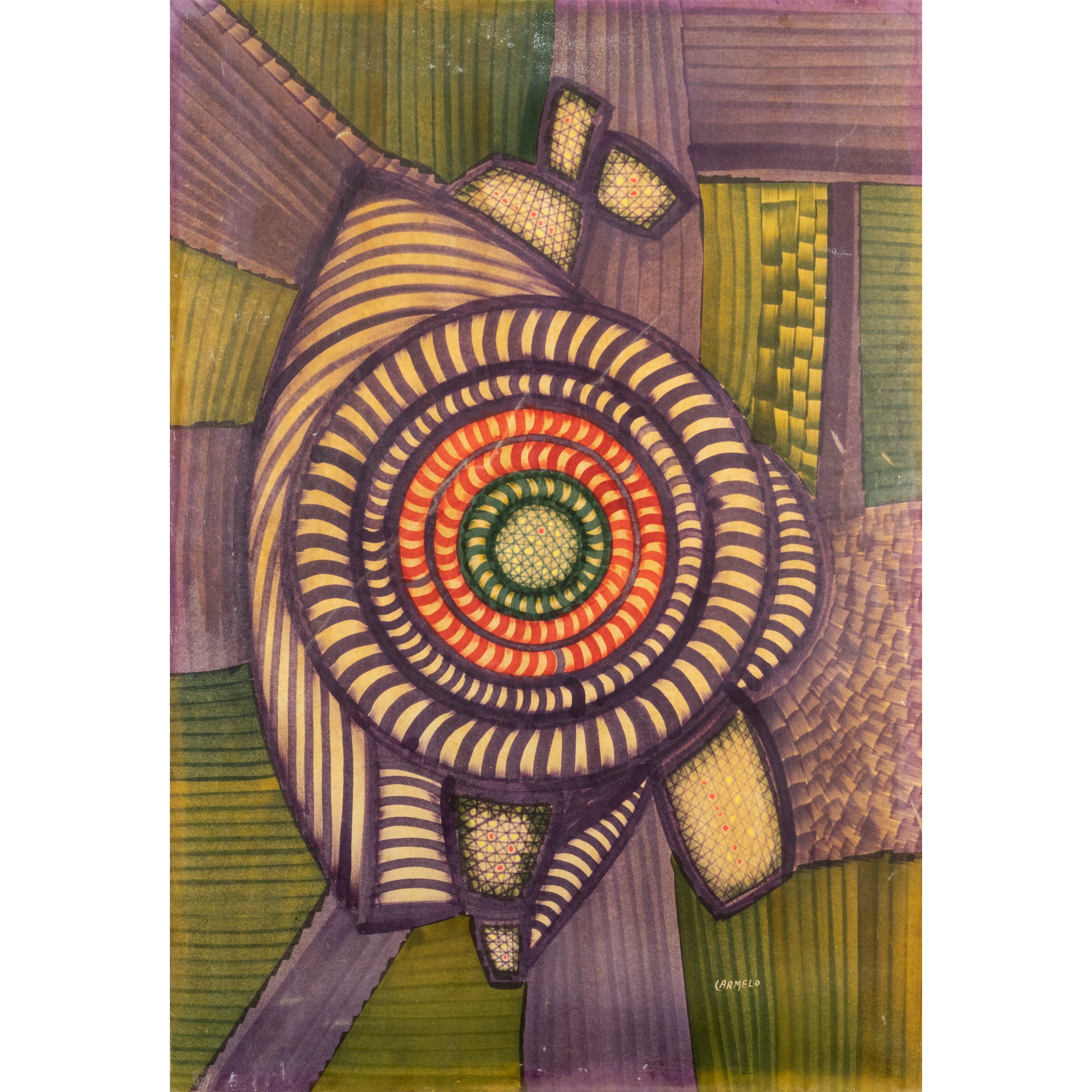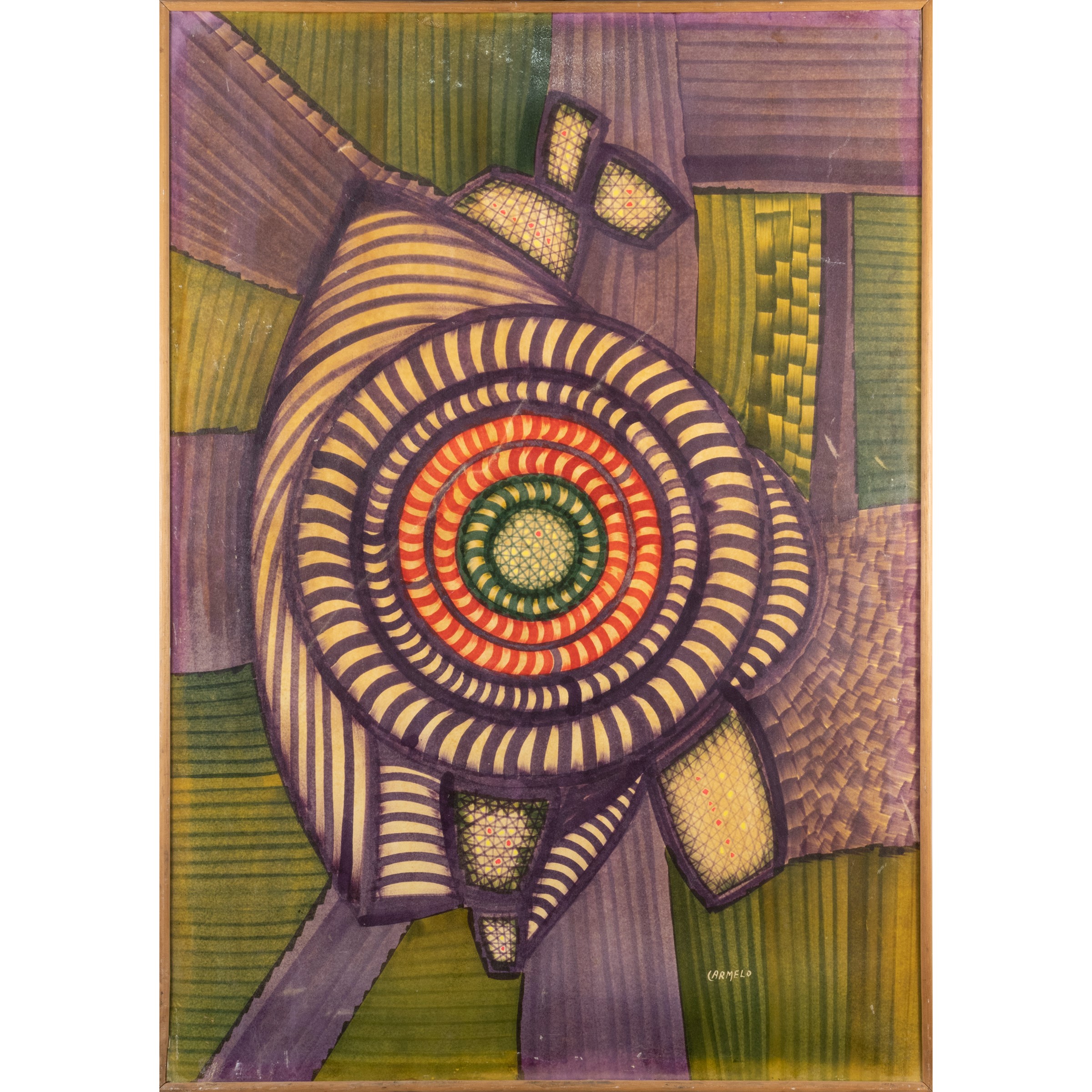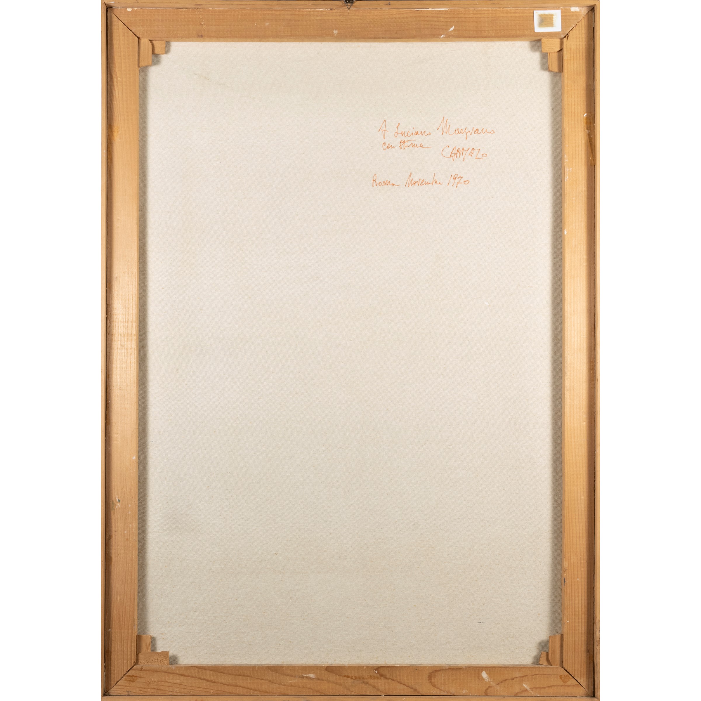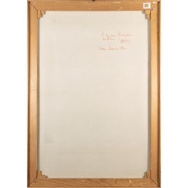 tecnica mista su carta applicata su tela, firmato in basso a destra, firmato, dedicato e datato sul retro, entro cornice