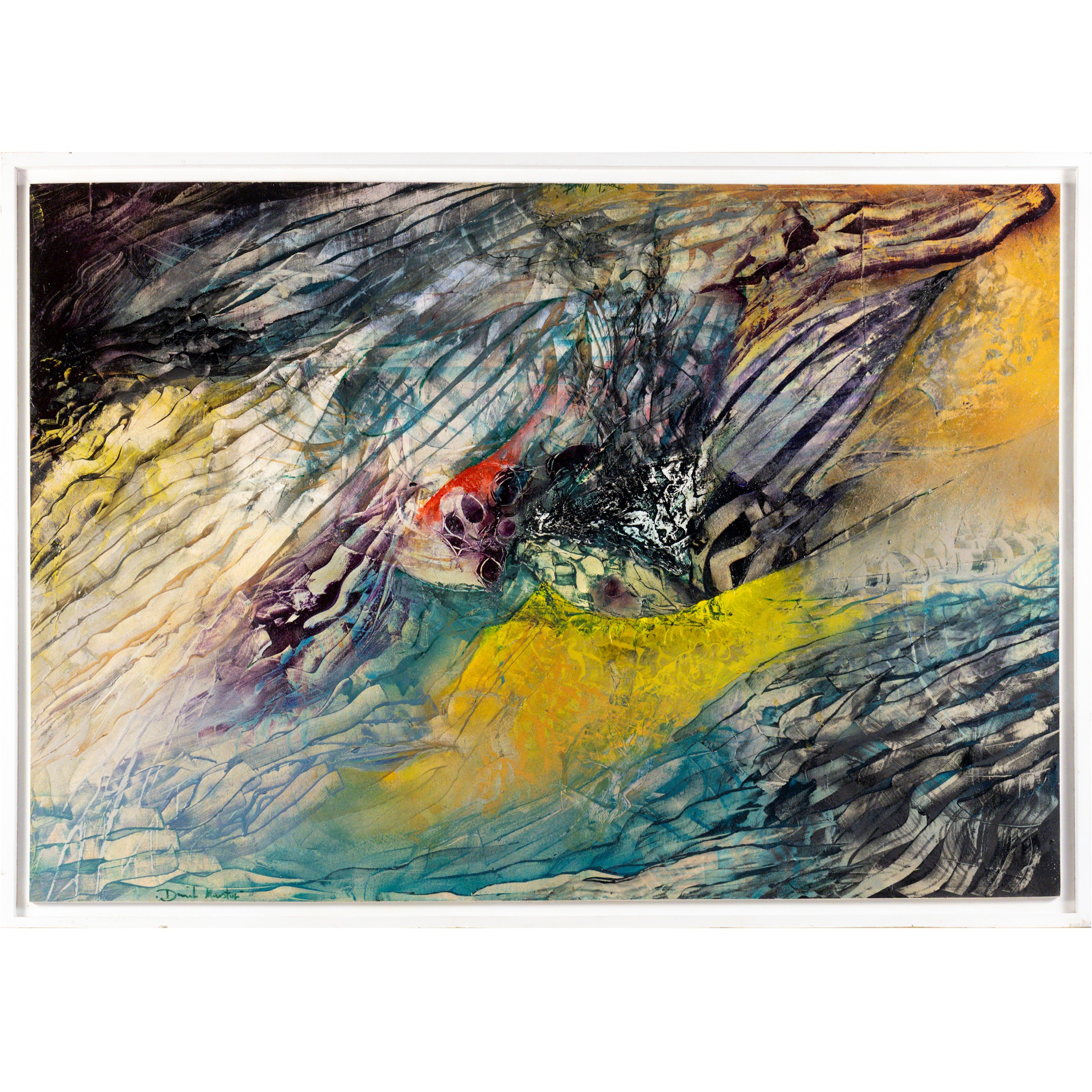 tecnica mista su compensato, firmato in basso a sinistra, entro cornice