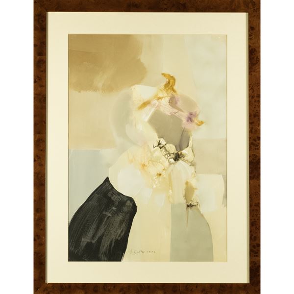 tecnica mista su cartoncino, firmato e datato in basso al centro, entro cornice