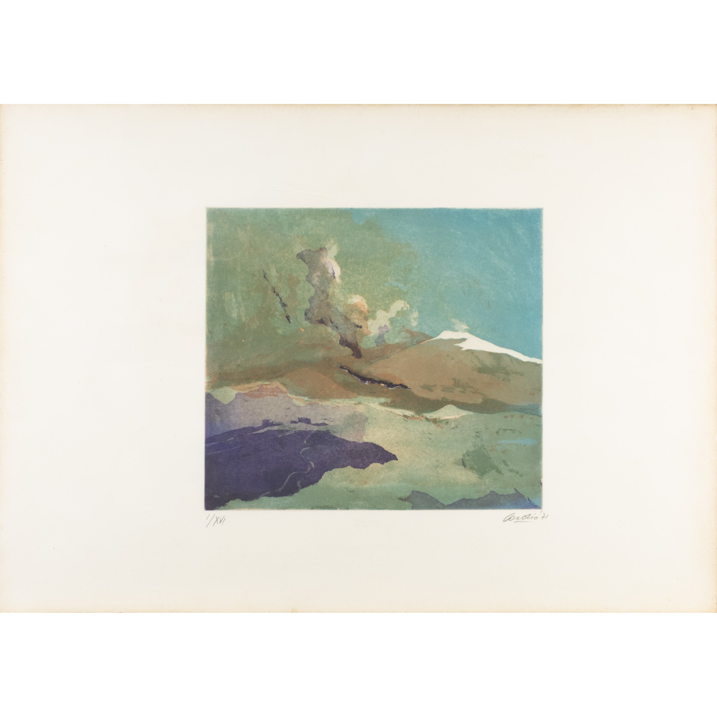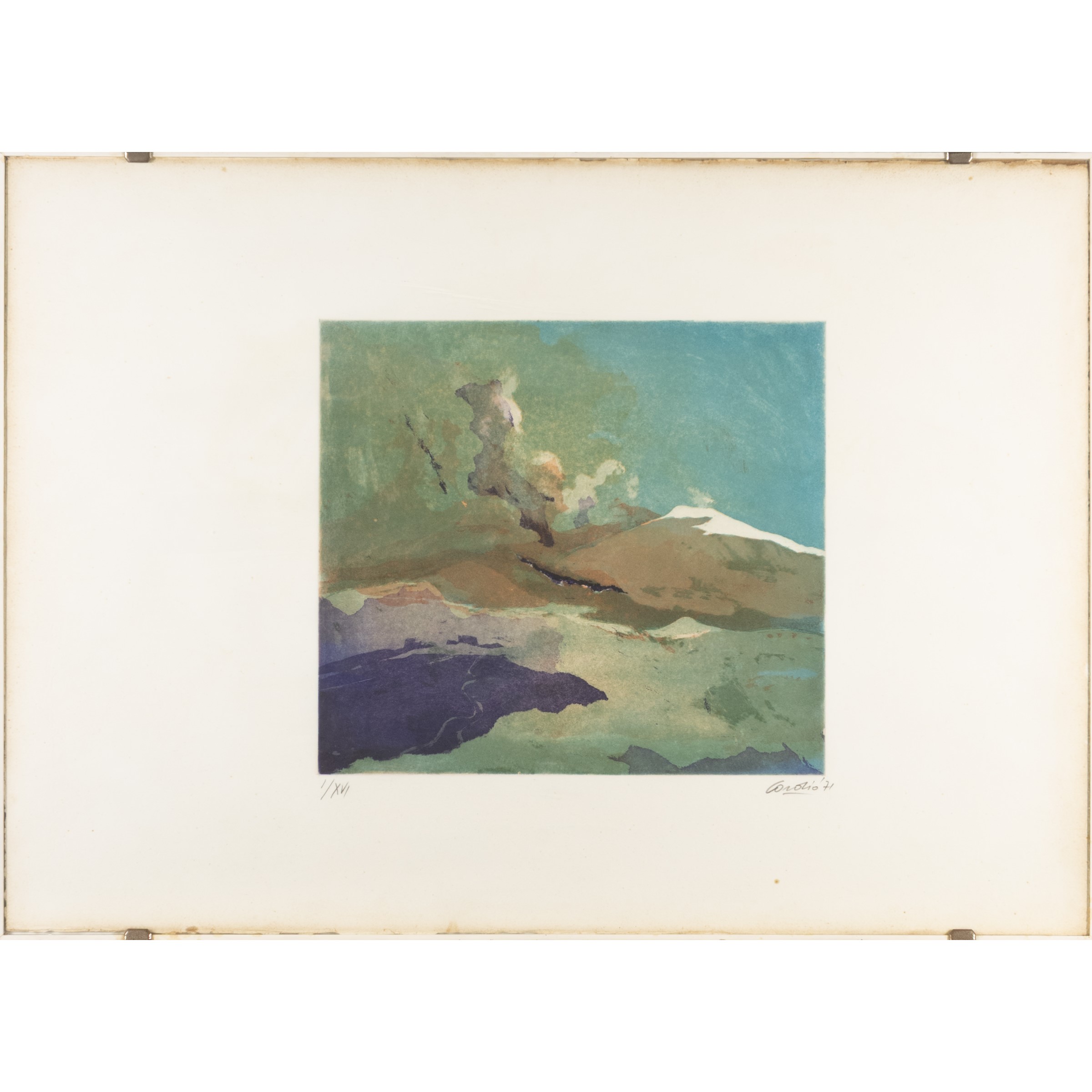 litografia a colori, es. I/XVI, firmato e datato in basso a destra, entro cornice