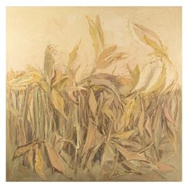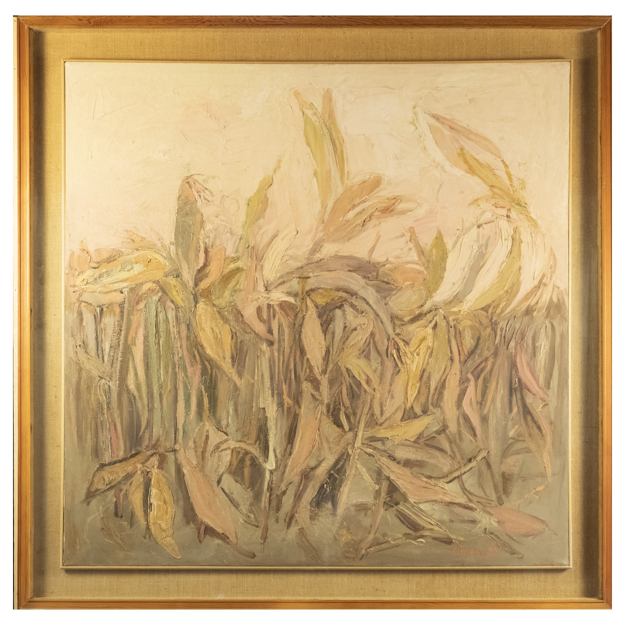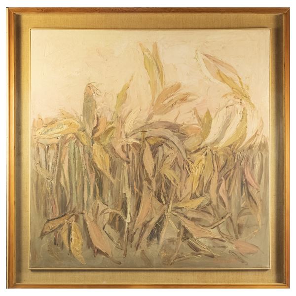 "Campo di pannocchie", olio su tela, firmato "C. Morelli" in basso a destra, entro cornice