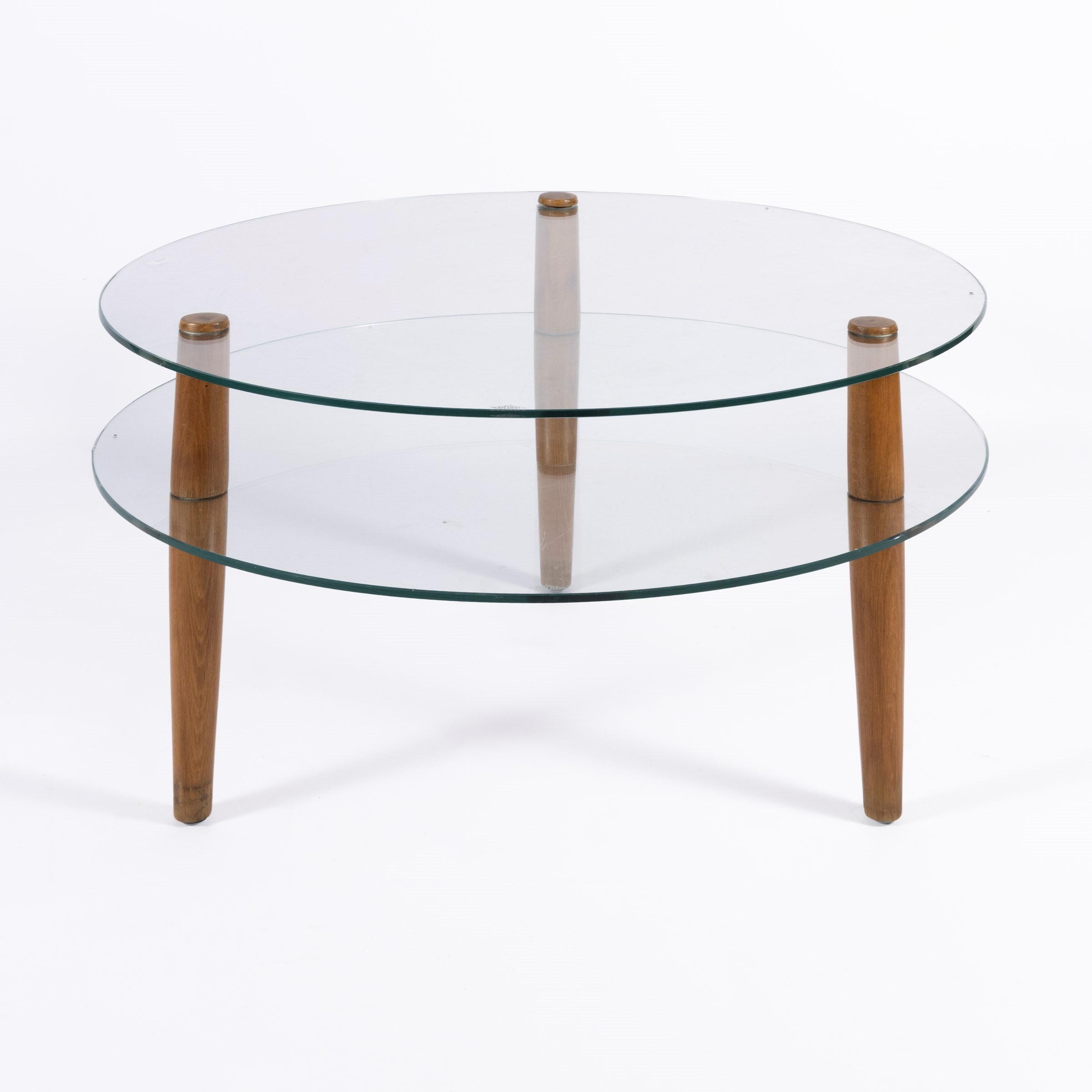 tavolino basso in legno e vetro trasparente, lievi difetti
