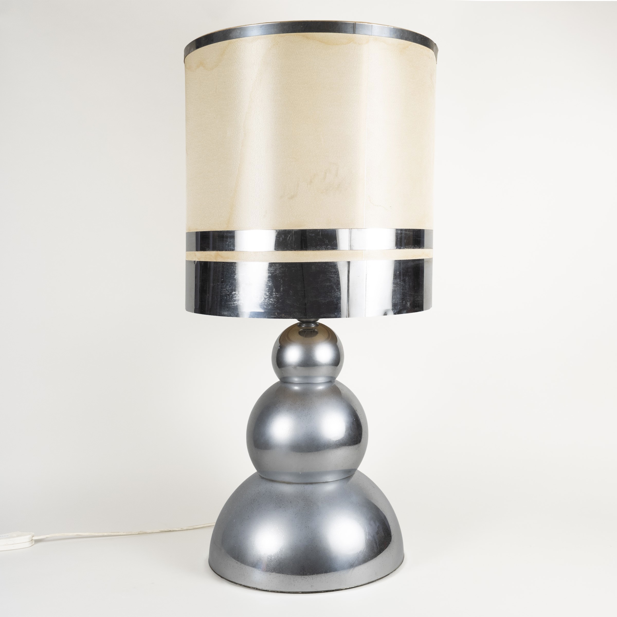 lampada da tavolo in metallo argentato, completa di paralume, usure