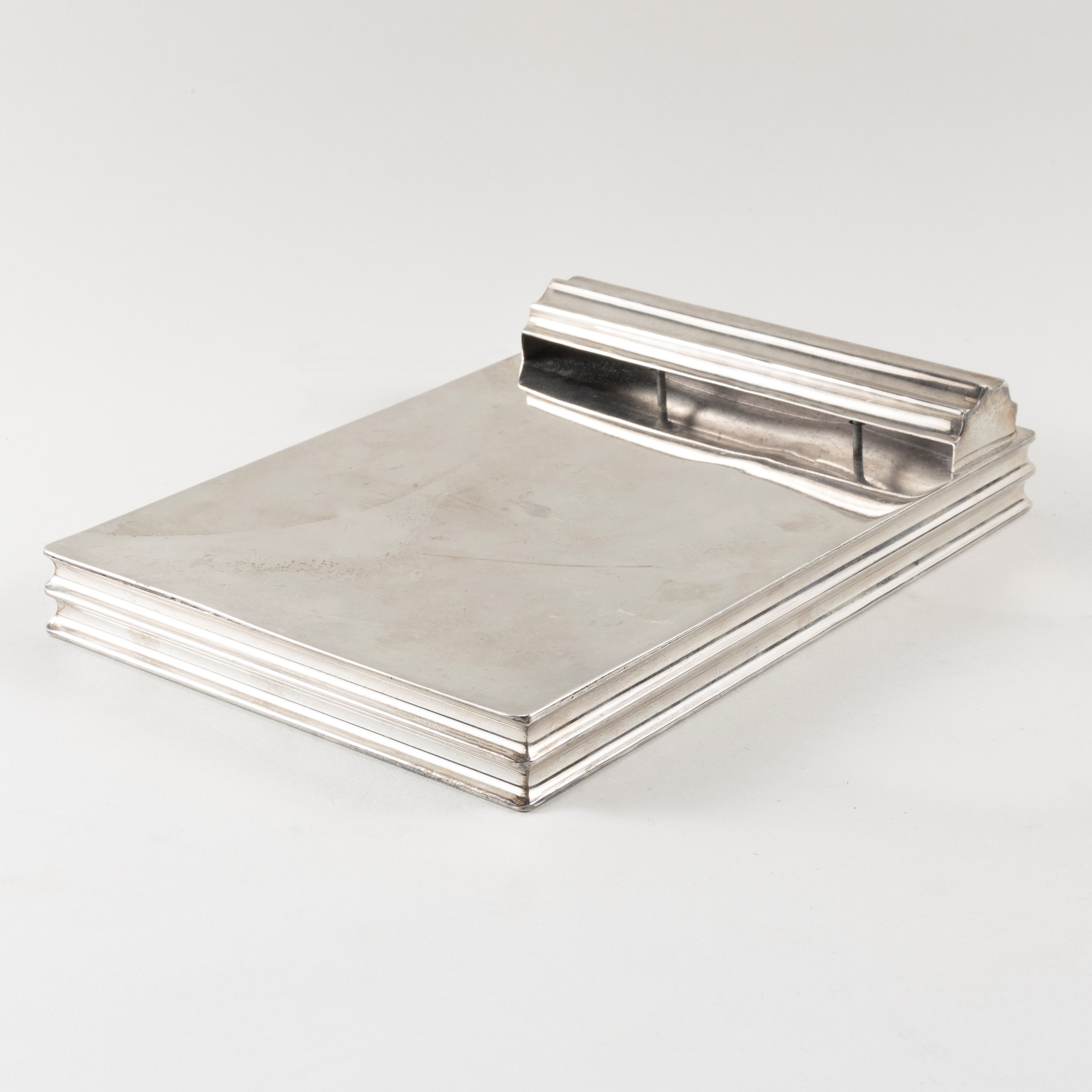 portablocco in metallo argentato, marchio della produzione, lievi usure