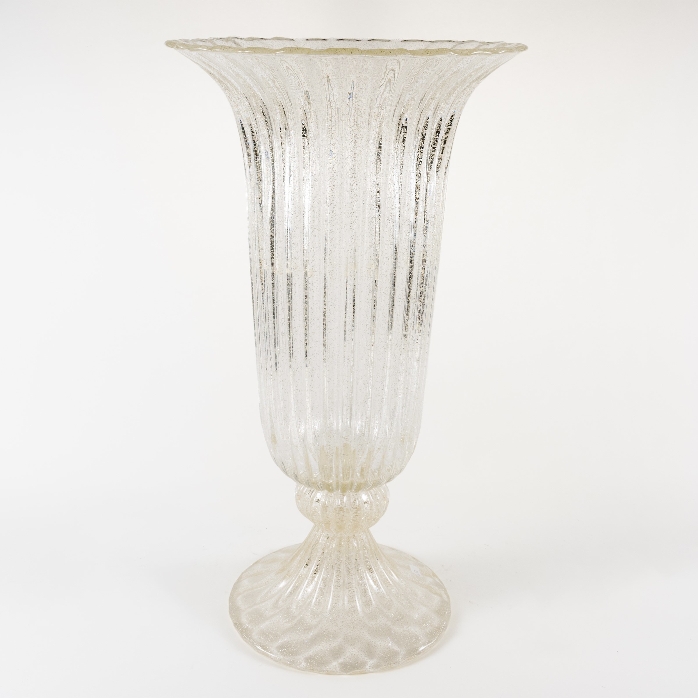 grande vaso in vetro trasparente e foglia d'oro, lievi usure
