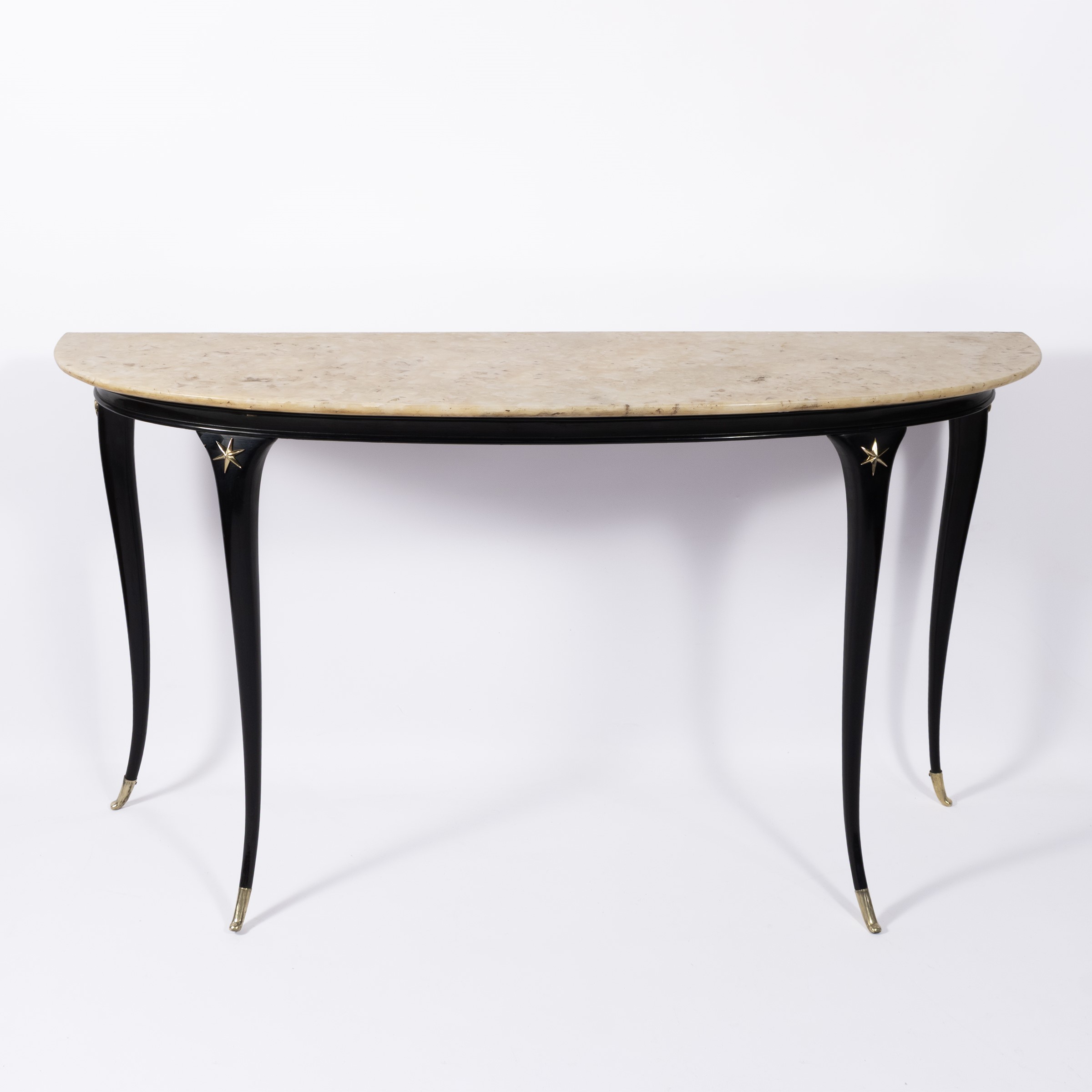 console in legno laccato, ottone e marmo, lievi usure