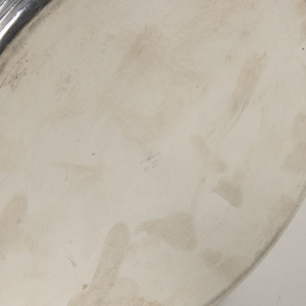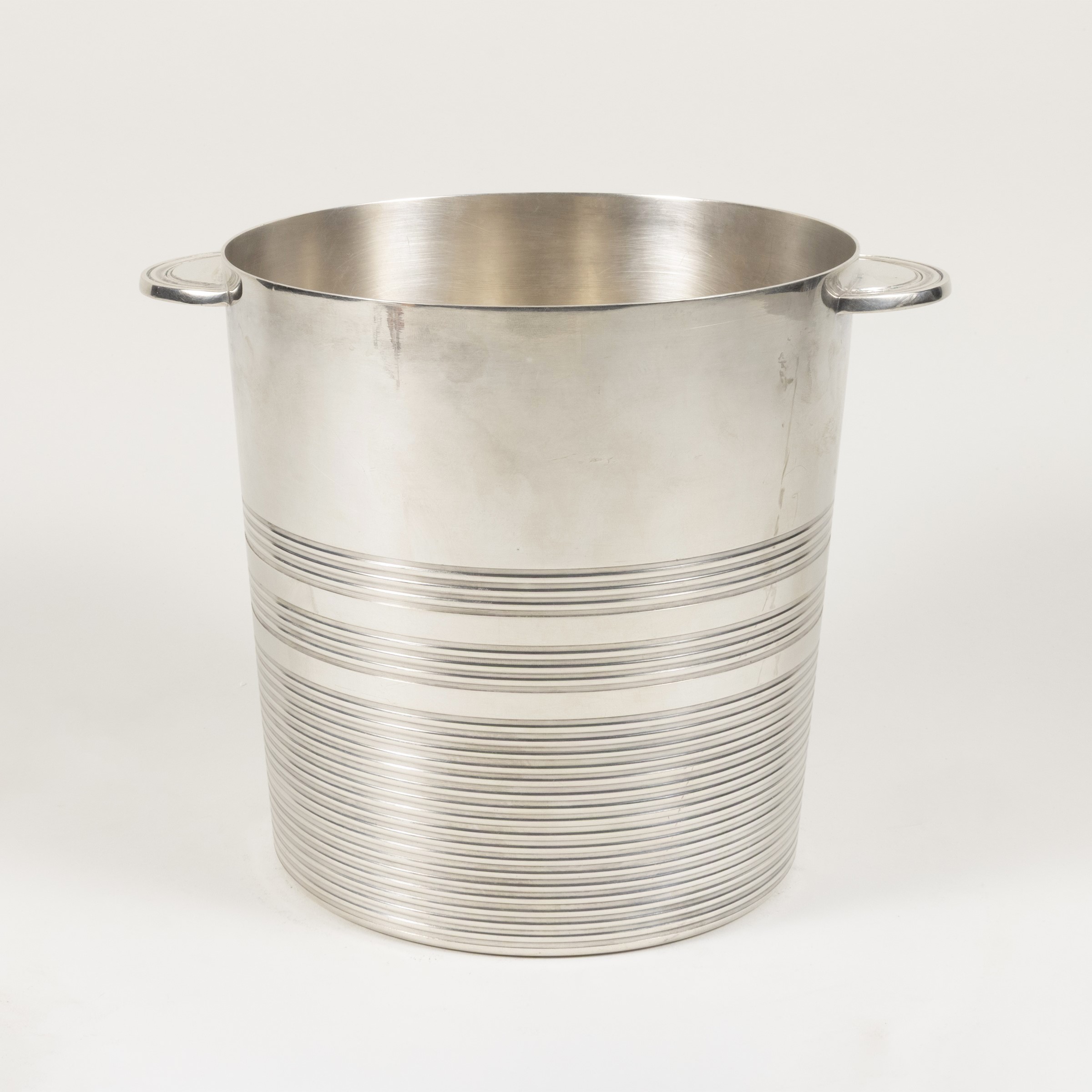 secchiello portabottiglia in metallo argentato, marchio della produzione, lievi usure