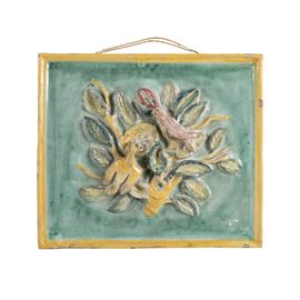 placca in terracotta maiolicata, marchio della produzione, difetti