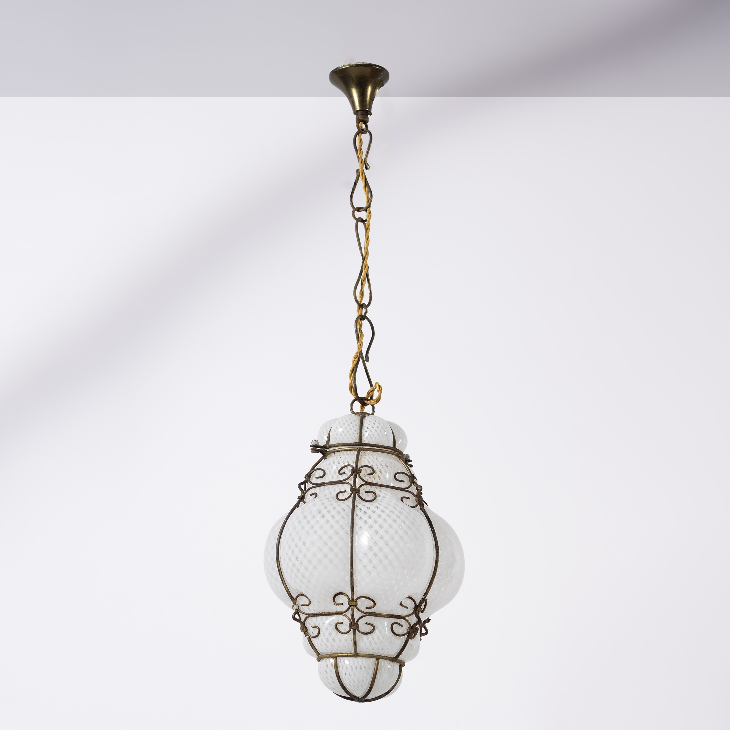 lampada a sospensione in ottone e vetro reticello