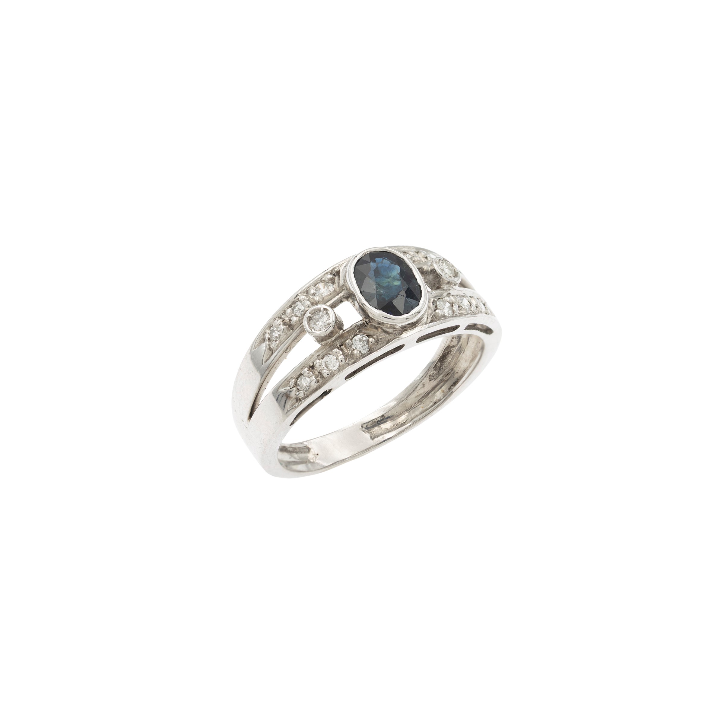 peso 5 gr.zaffiro ovale ct 0,50 circa, diamanti taglio brillante ct 0,15 circa, misura 16