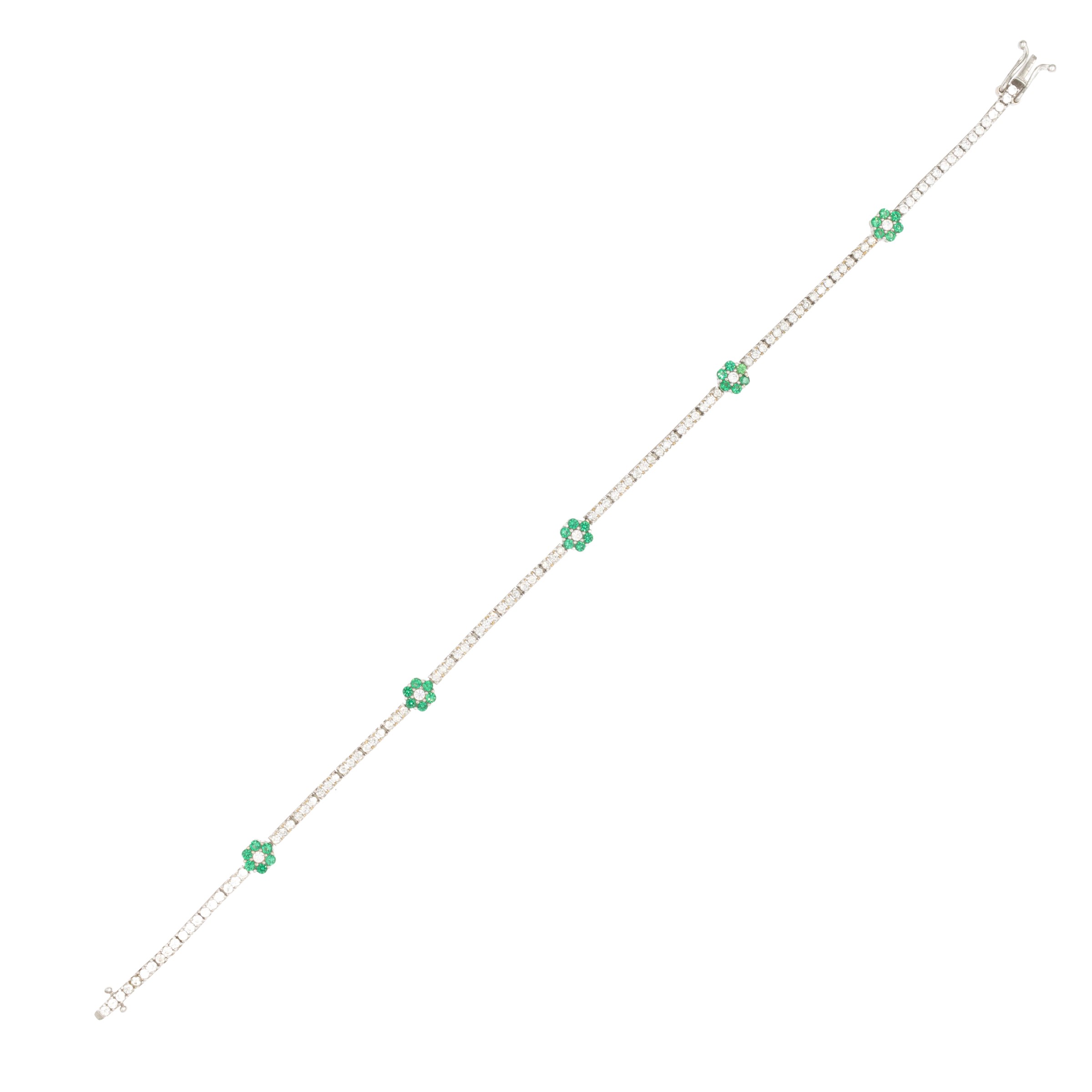 peso 5 gr.taglio brillante ct 1,20 circa, alternati da fiori in oro smeraldi e diamanti, lunghezza 18 cm.