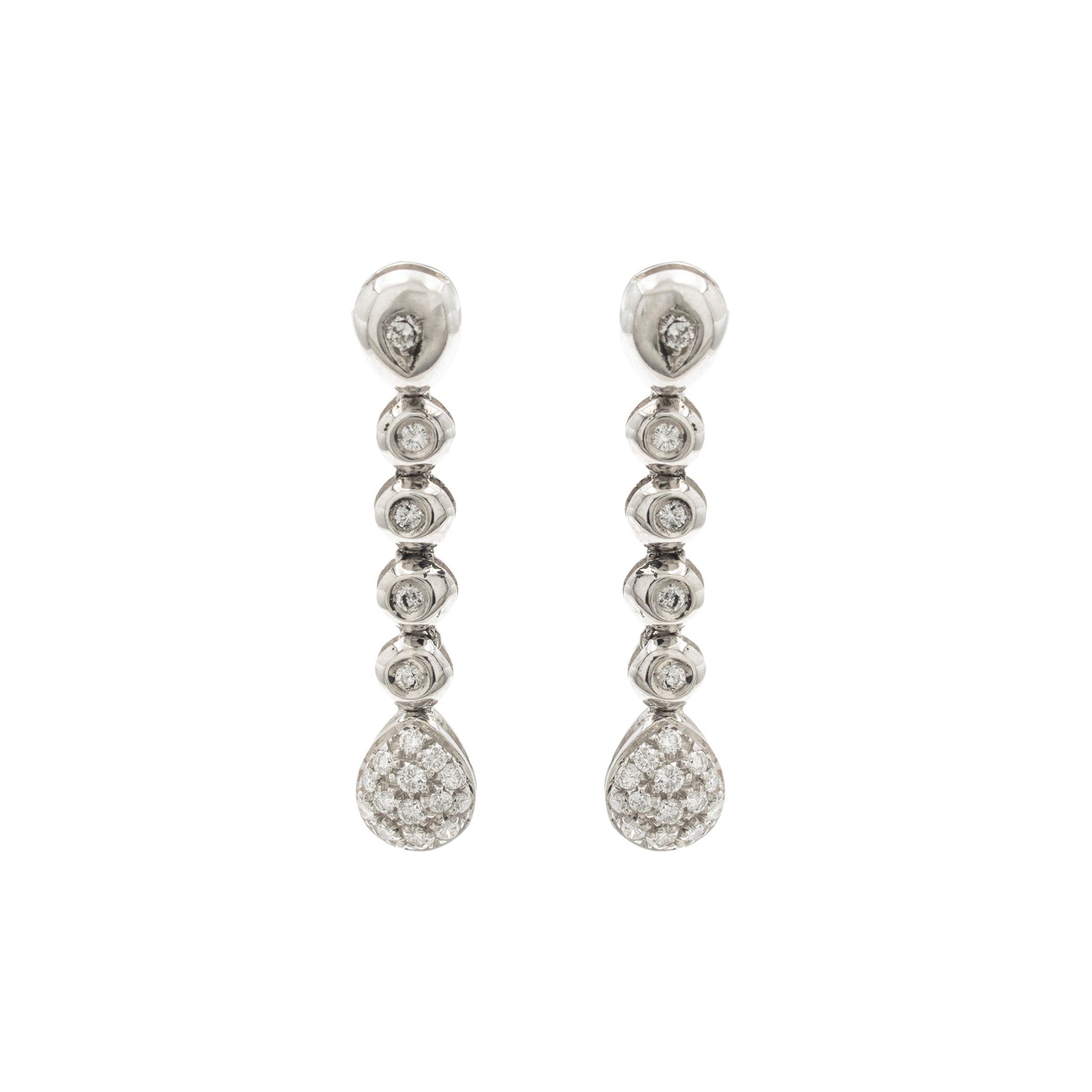 peso 6 gr.in oro bianco 18kt e diamanti taglio brillante ct 0,45 circa, lunghezza 3 cm.