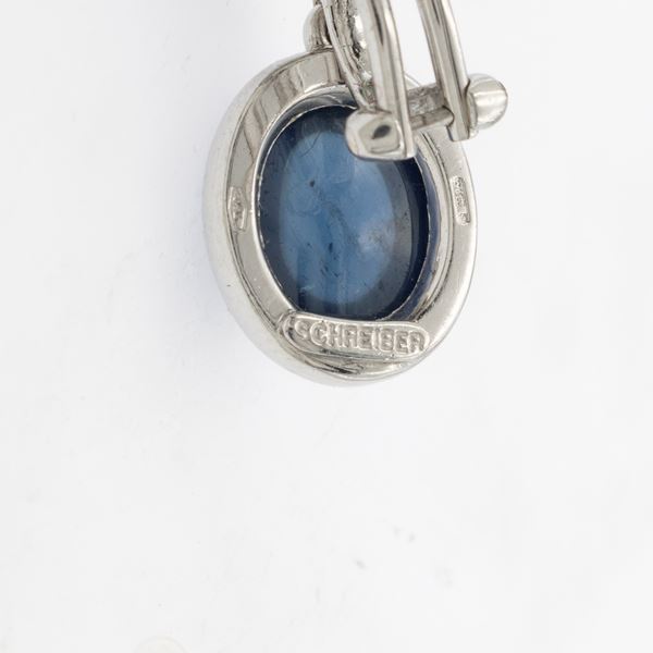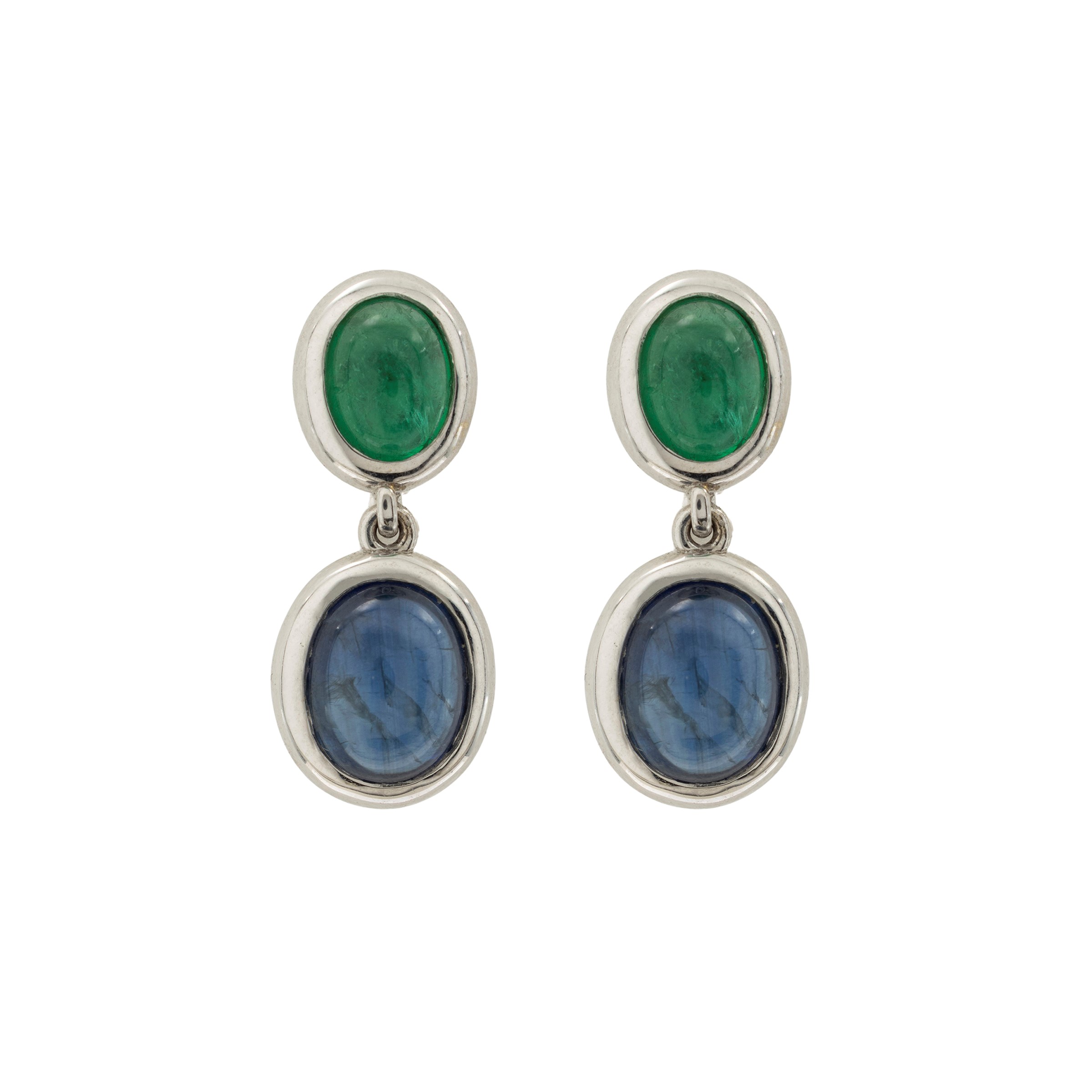 Orecchini pendenti in oro bianco 18kt zaffiri e smeraldi
