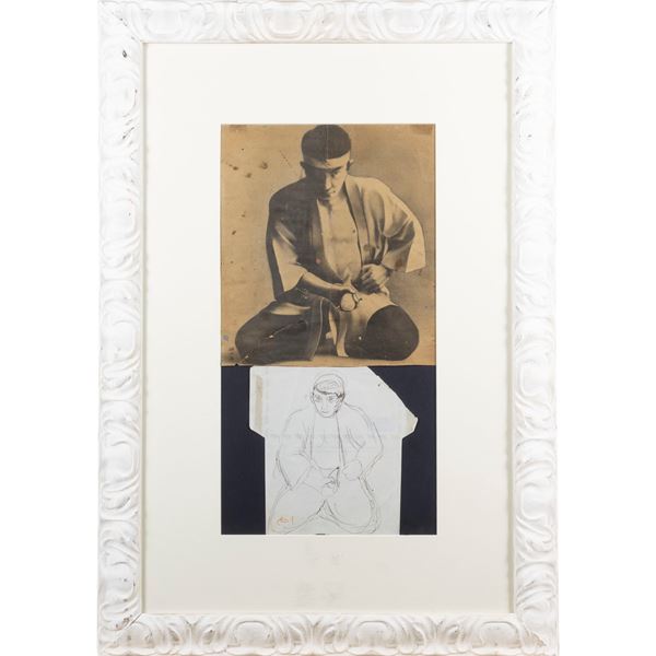 49,5x26 cm."Senza titolo", tecnica mista e collage, entro cornice
