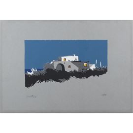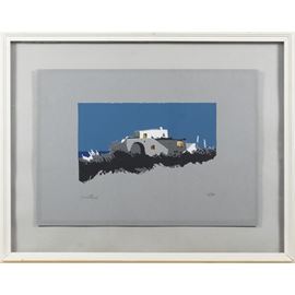 35x49,5 cm.serigrafia a colori, es. 12/50, firmata in basso a sinistra, timbro a secco "La Sfera stamperia d'arte, Roma" in basso a destra, entro cornice