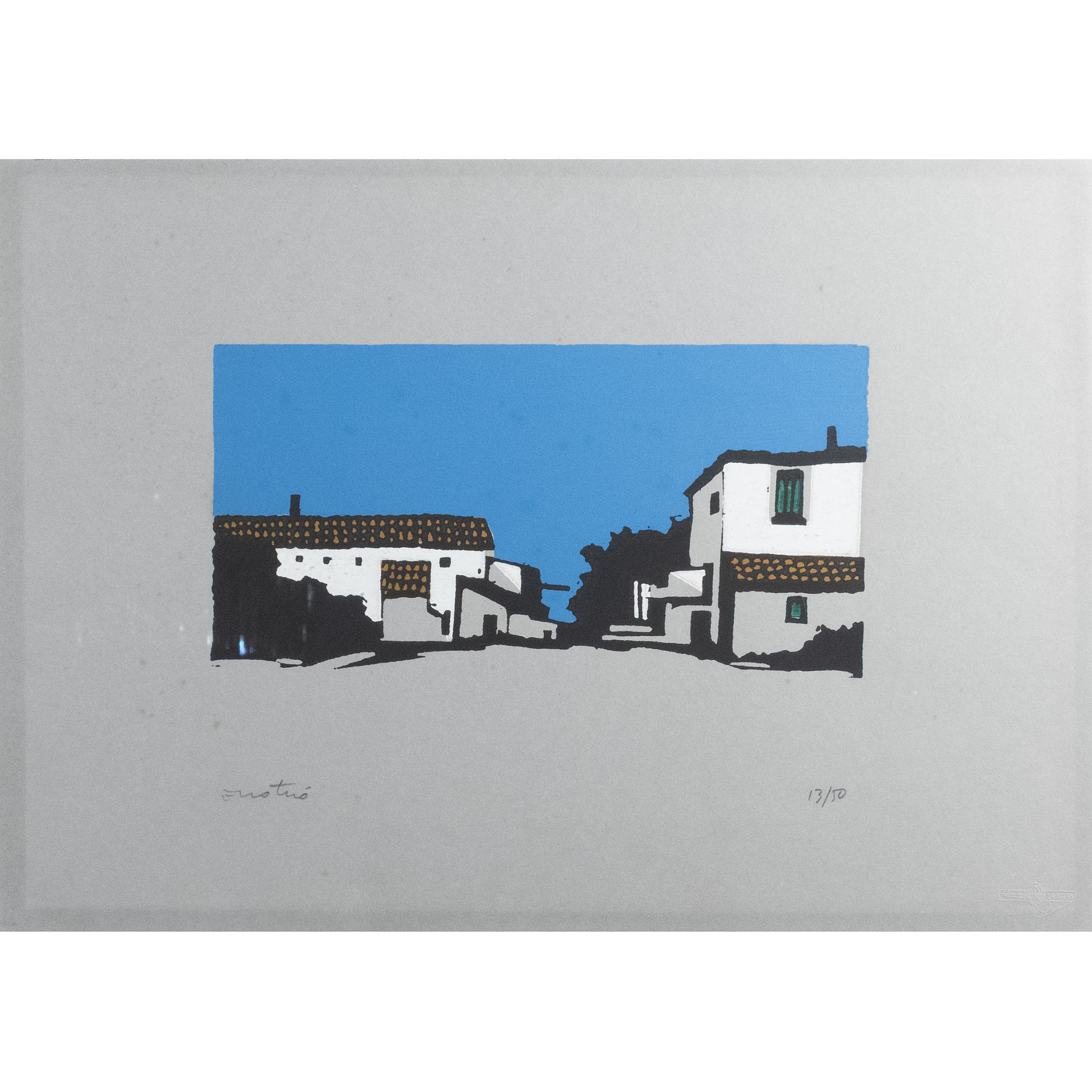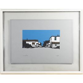 serigrafia a colori, es. 13/50, firmata in basso a sinistra, timbro a secco "La Sfera stamperia d'arte, Roma" in basso a destra, entro cornice