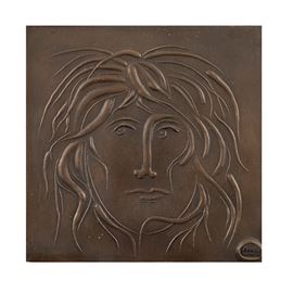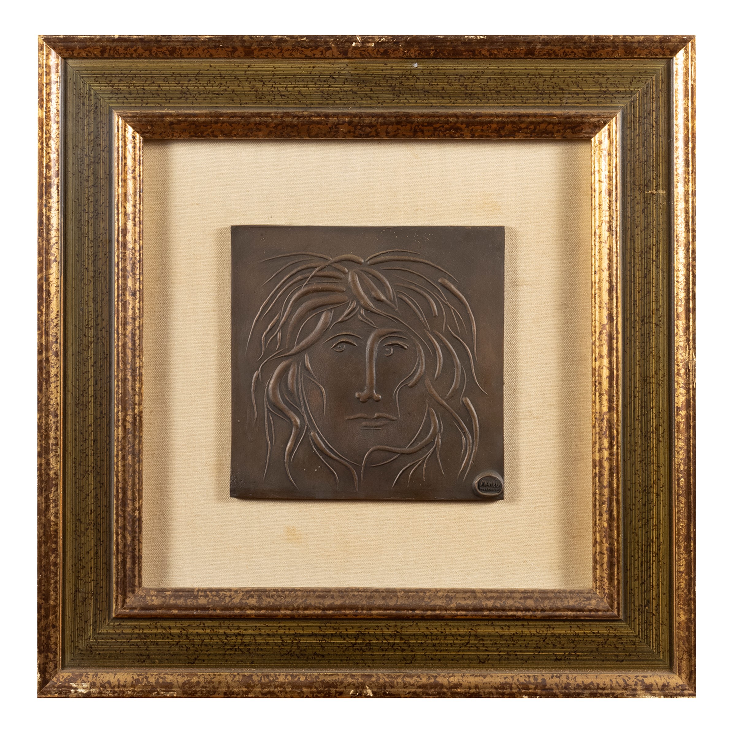 20,5x20,5 cm.bassorilievo in bronzo, es. 72/99, firmato in basso a destra, entro cornice