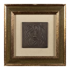 bassorilievo in bronzo, es. 75/99, firmato in basso a destra, entro cornice