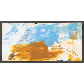 smalto e collage su busta da lettere, firmato in basso a destra, entro cornice