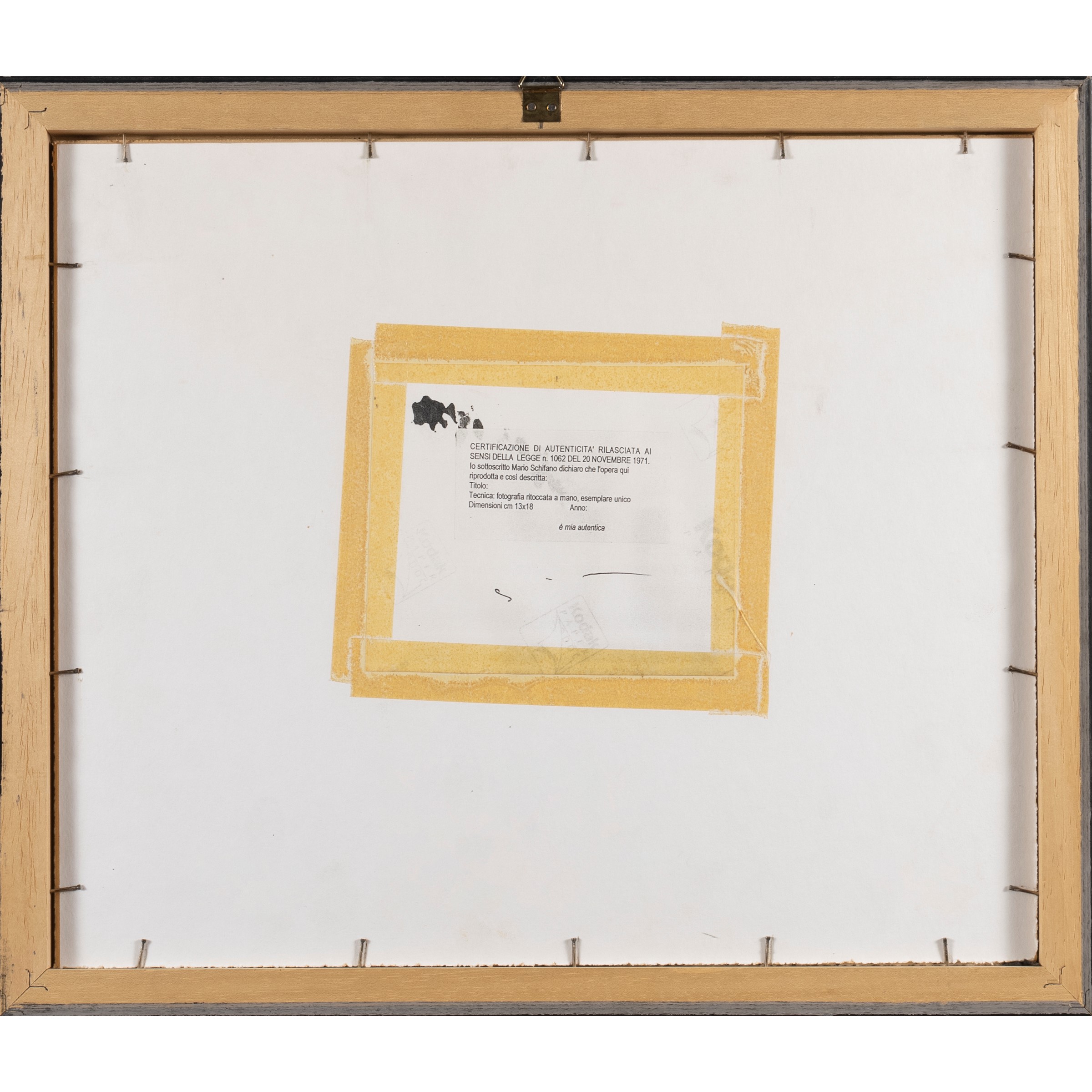 13x18 cm.fotografia ritoccata a mano, firmata sul retro, entro cornice