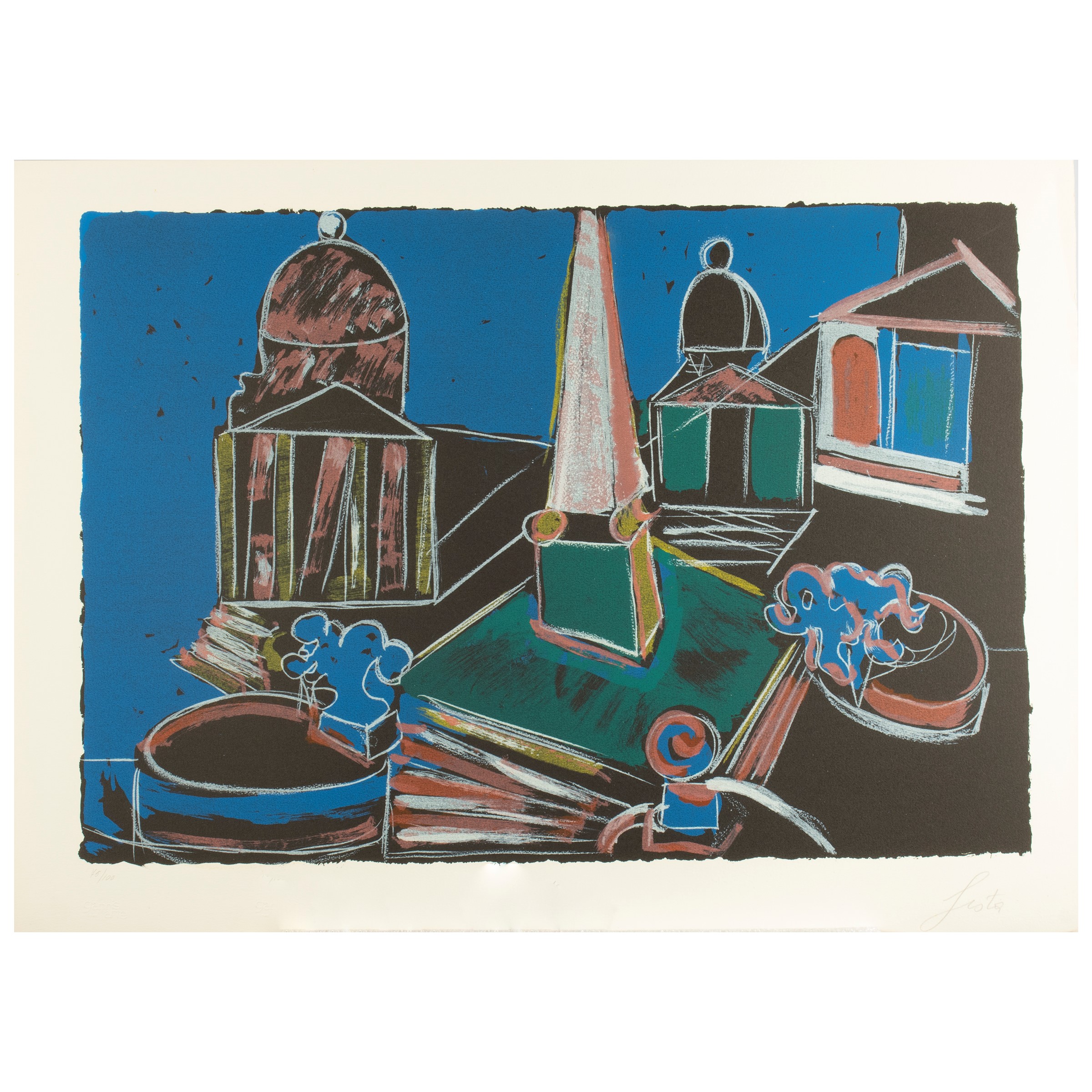 55,5x76 cm.litografia a colori, es. 75/100, firmata in basso a destra, timbro a secco "gaphis arte" in basso a sinistra