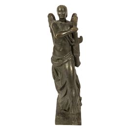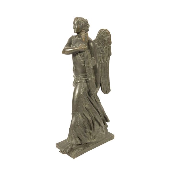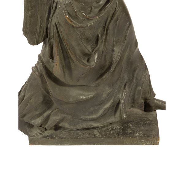 76,5x20x45 cm.scultura in bronzo a patina scura, firmata sulla base.
