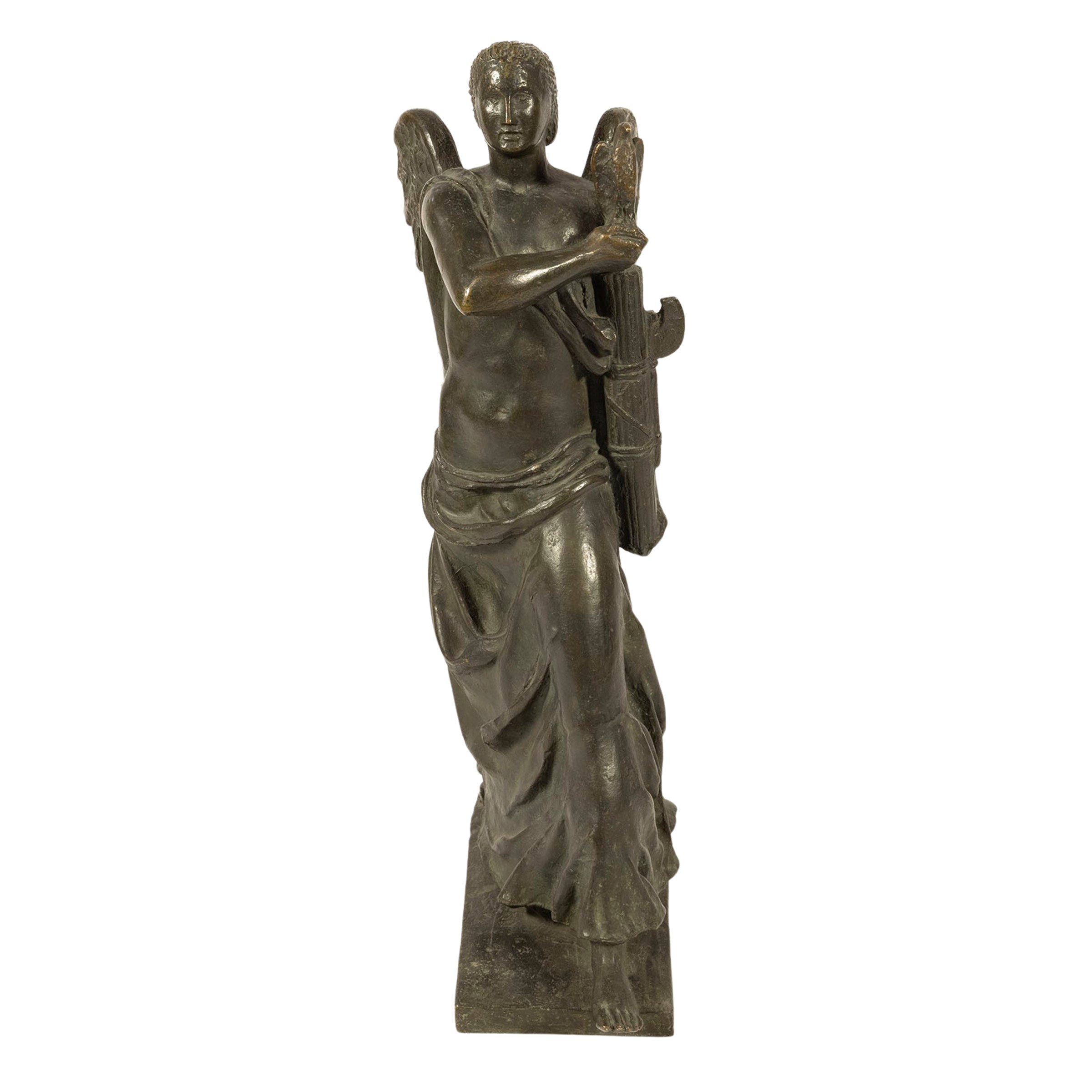 "Eseguita nel maggio 1932 per il concorso indetto dalla Biennale di Venezia in occasione del primo decennale della Marcia su Roma. L'esposizione delle opere selezionate (233 di 214 artisti) fu allestita nel padiglione della Cecoslovacchia, e questa "Vittoria alata", poderosa nell'atto della marcia, con al fianco il fascio littorio sormontato dall'aquila imperiale, fu collocata innanzi al portale di accesso al padiglione. Martini inviò anche un'altra Vittoria con bandiere che fu esposta accanto alla precedente. All'entusiastico elogio di Calzini si contrappose Ojetti (1933) che all'irruente stile martiniano anteponeva quello più pacato e classico di Maraini. Per ognuno dei soggetti Martini aveva realizzato due terrecotte, una coppia da inviare in Biennale, la seconda per la Mostra Artistica e Artigiana di Vado Ligure inaugurata il 13 agosto 1932.