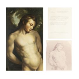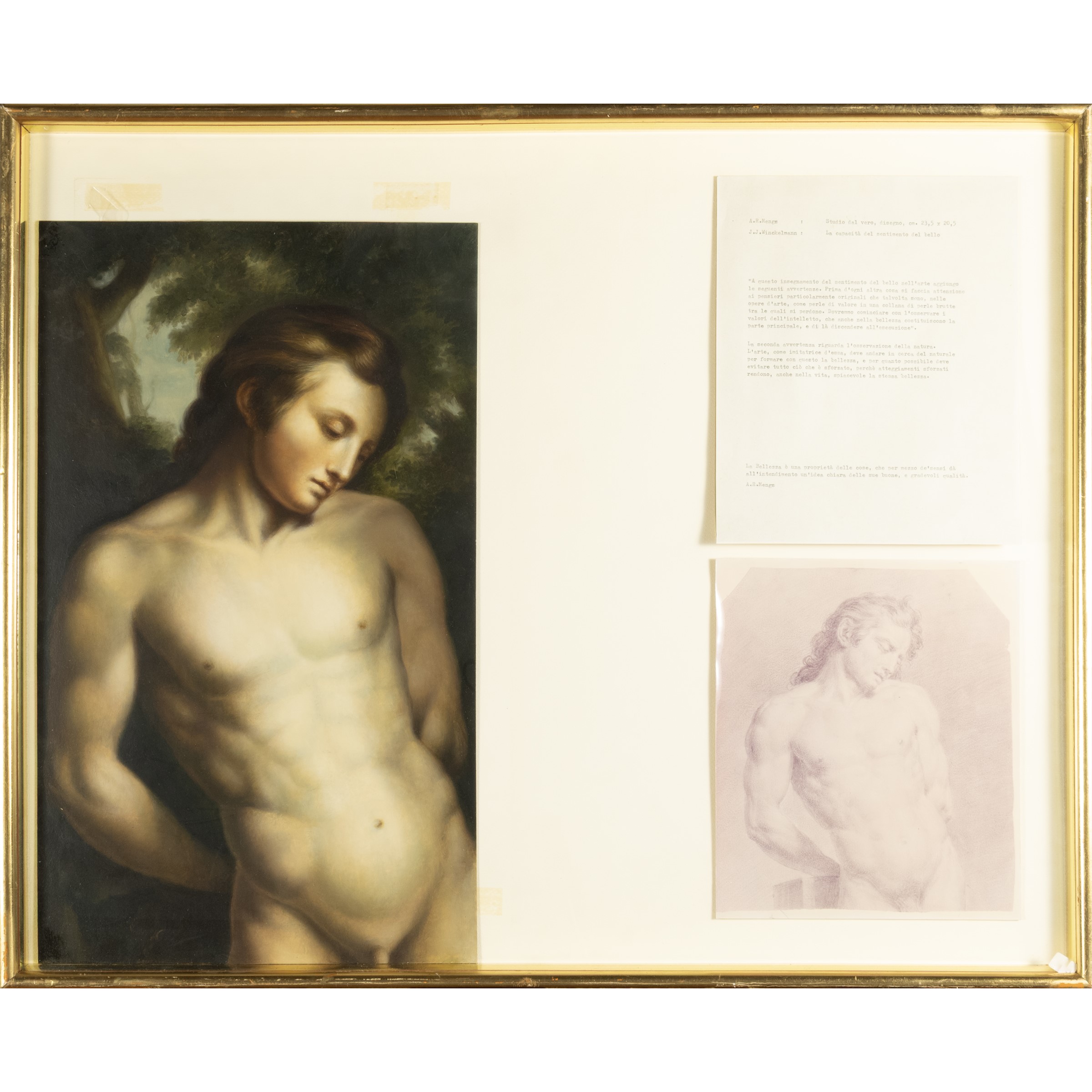 L'opera è composta da un dipinto ad olio su cartone, la fotografia del disegno preparatorio e due citazioni dattiloscritte di A. R. Mengs e J. J. Winkelmann