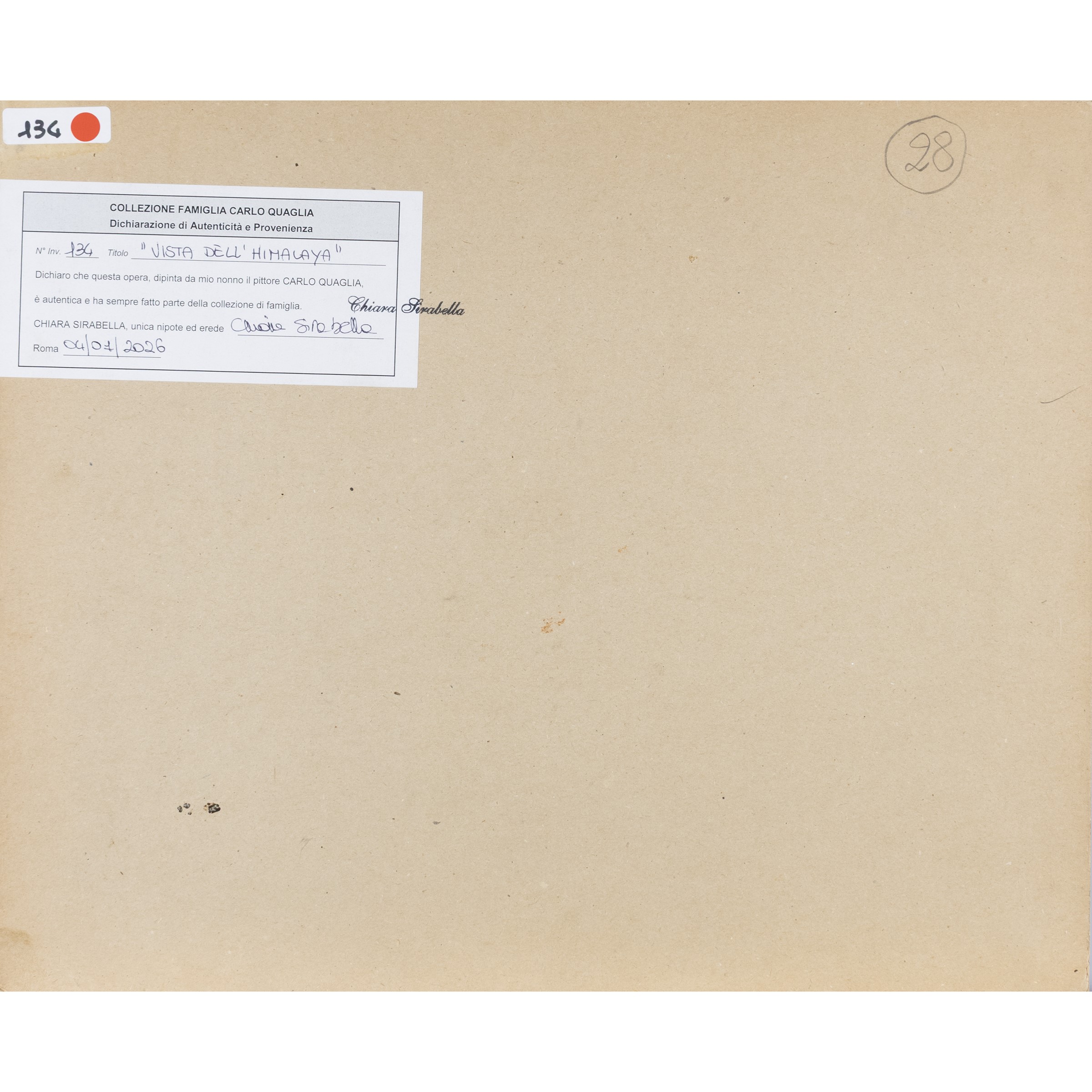 Provenienza: Collezione Famiglia Carlo Quaglia