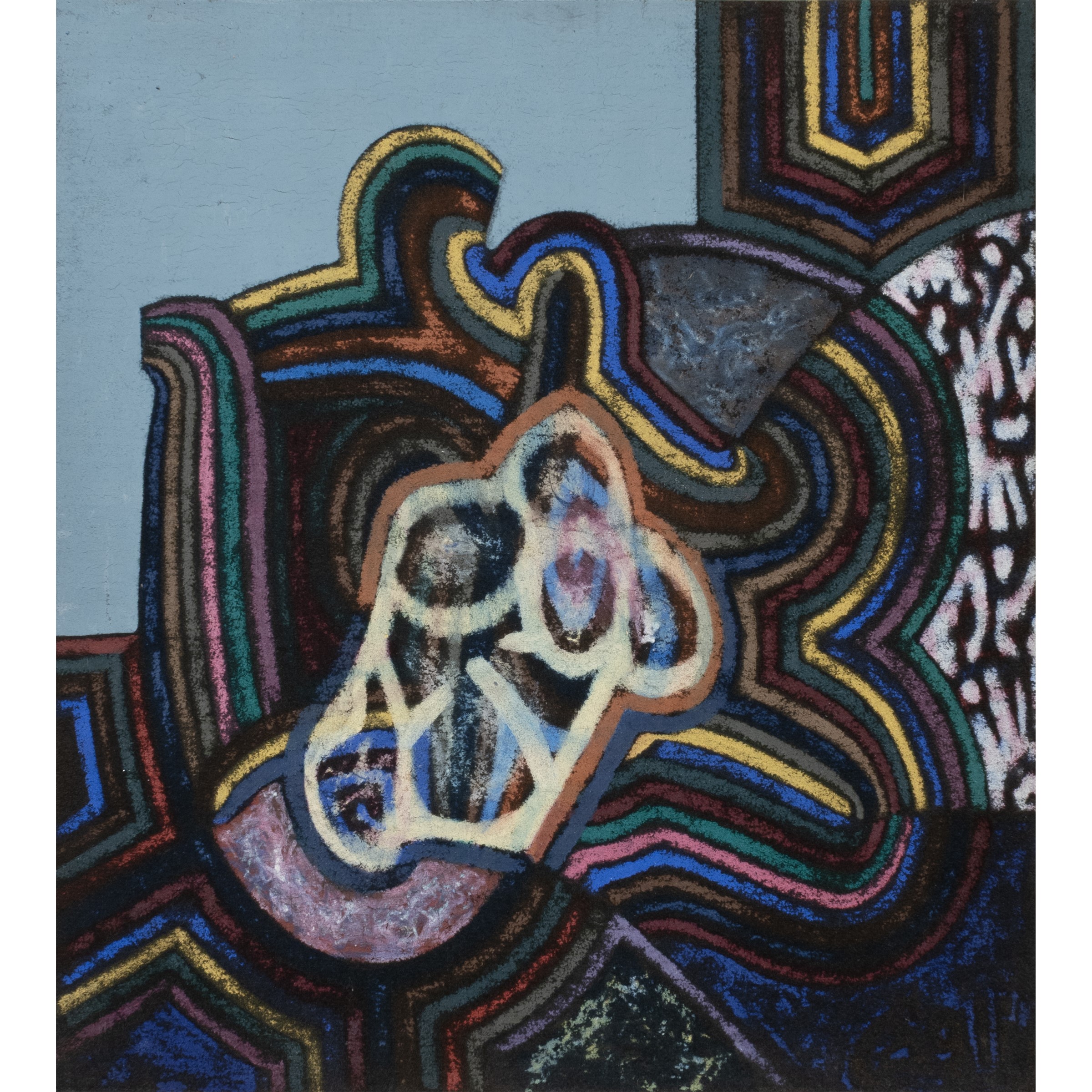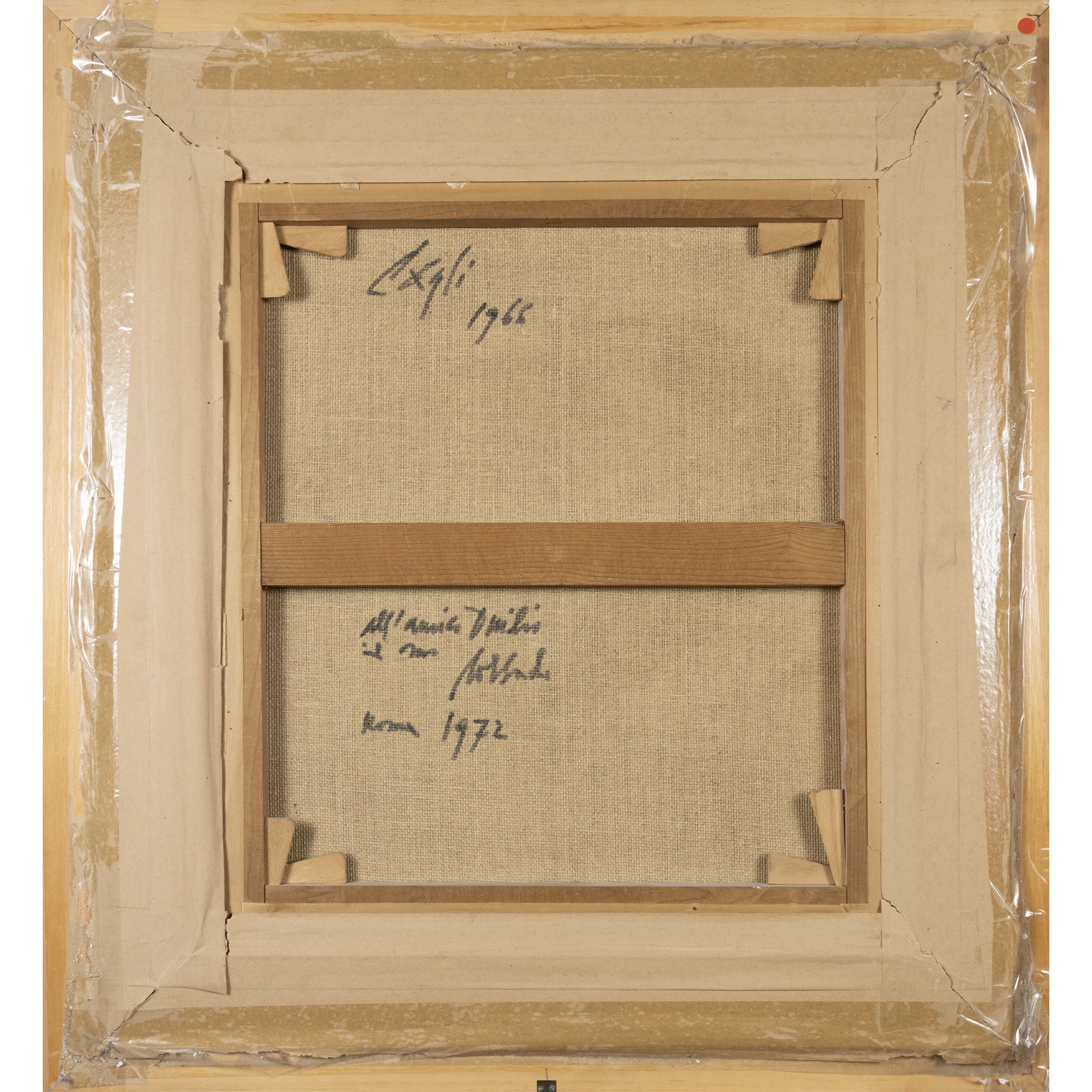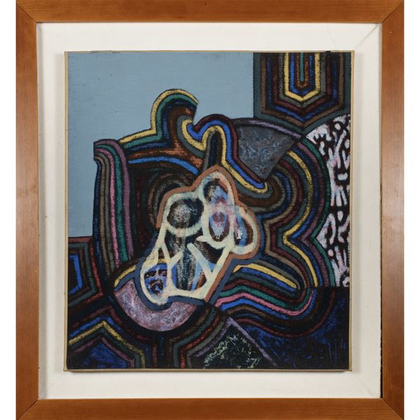 52x47 cm.pastello ceroso a olio su papier velour applicato su tela, firmato in basso a destra, firmato, datato e titolato sul retro, entro cornice