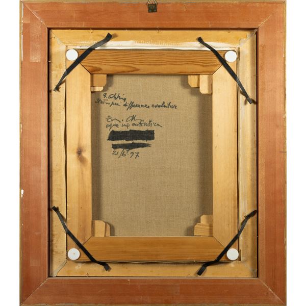 olio su tela, firmato in basso al centro, firmato, datato e titolato sul retro, firma per autentica sul retro, entro cornice
