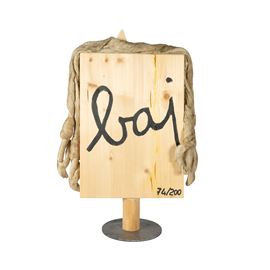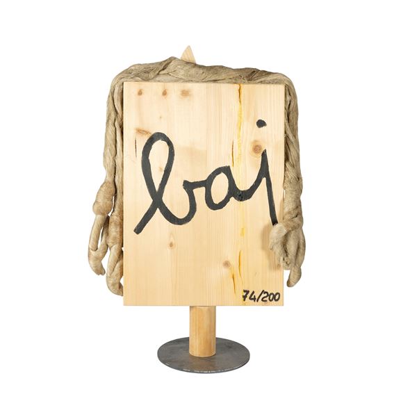 50x36x15 cm.scultura multiplo, es. 74/200, colori acrilici e collage di legni e oggetti, firmata e numerata sul retro.
