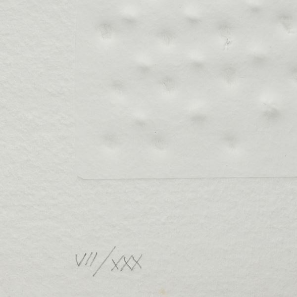 Bibliografia: L. Magini, "Enrico Castellani opera grafica 1960 - 1995", ed. Corraini, Mantova 1996, immagini n. 47- n. 48 - n.49