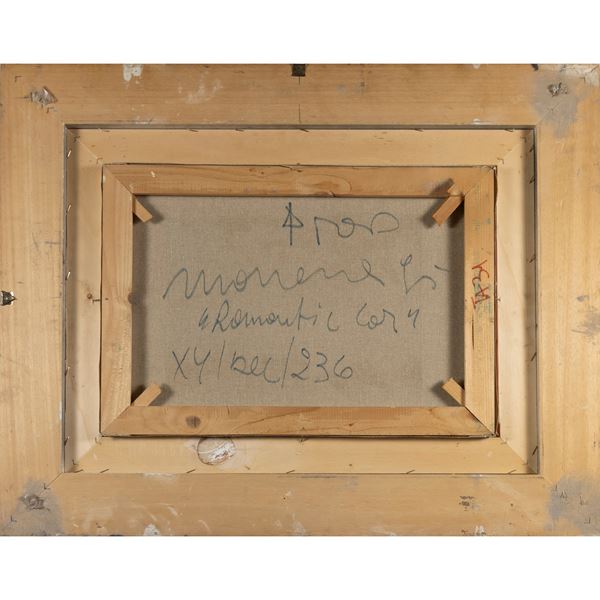 35x50 cm.tecnica mista e collage su tela, firma, titolo e numero d'archivio sul retro, entro cornice