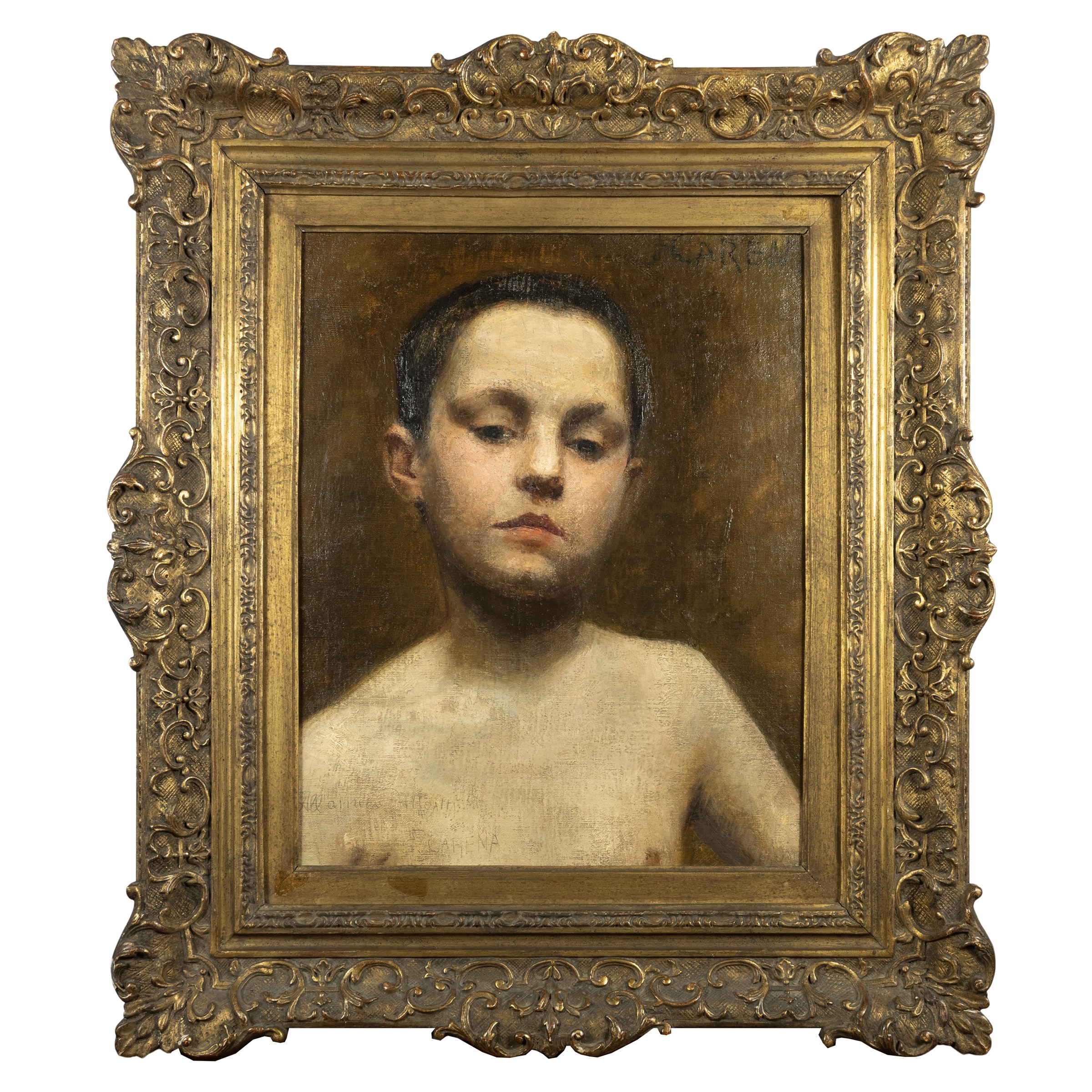 olio su tela, firmato in alto a destra, dedicato e firmato in basso a sinistra: "All'amico Alloatti F. Carena", entro cornice
